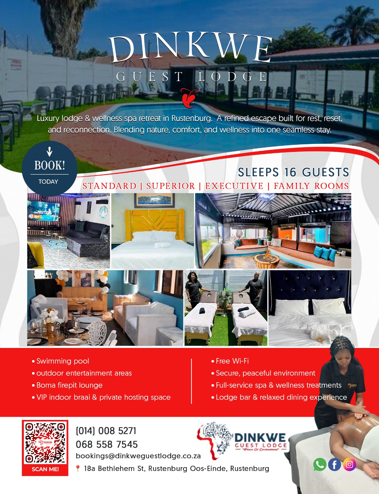 Welcome to Dinkwe Guest Lodge, a peaceful retreat nestled in Rustenburg. Here, true luxury lies in harmony—between mind and body, people and nature, rest and adventure.