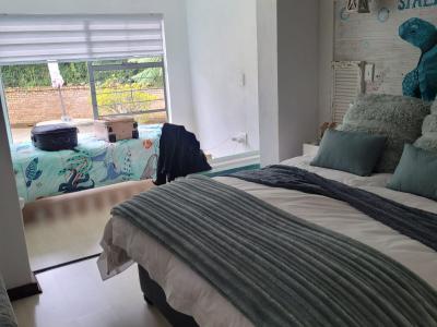The bedroom features a cozy double bed, complemented by a single bed with a pull-out bed to comfortably sleep the kids we also have air-conditioning. An en-suite bathroom is equipped with a shower and toilet for added convenience.