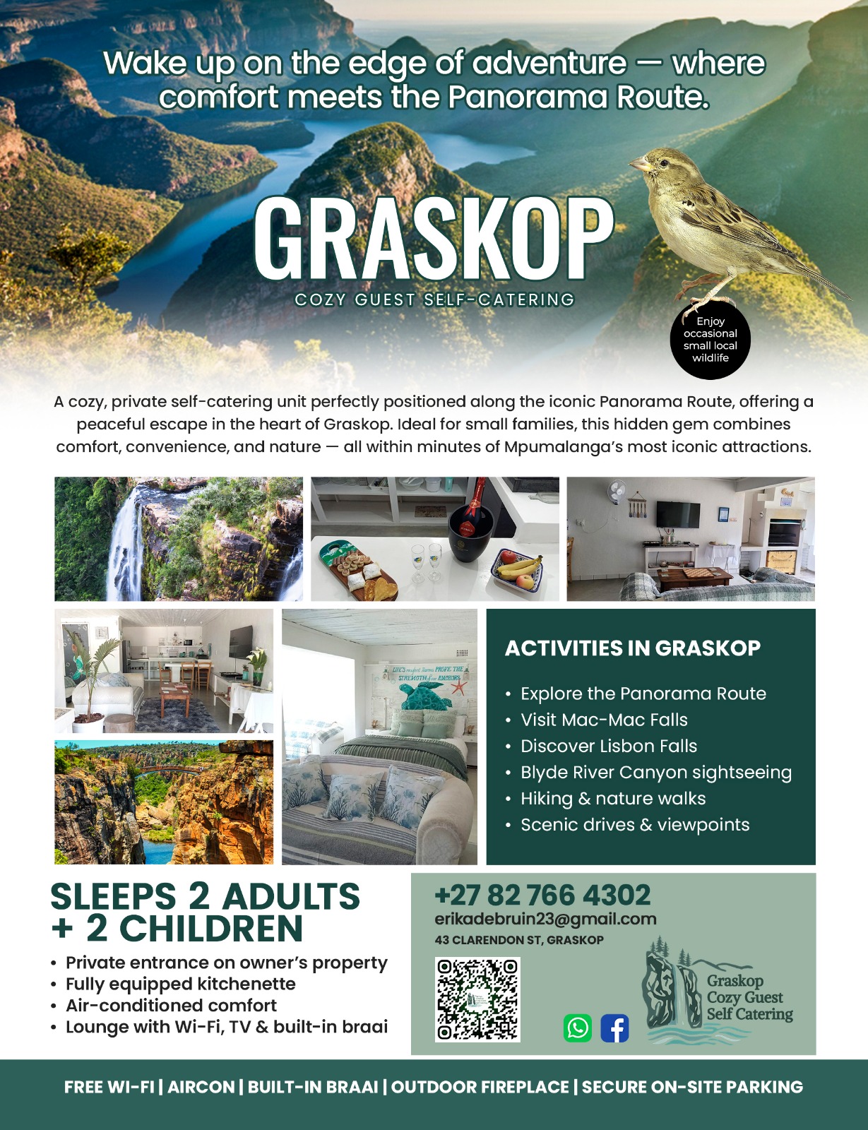 Graskop Self Catering is a cozy and spacious self-catering unit located in Graskop, perched on the edge of the beautiful Drakensberg escarpment.