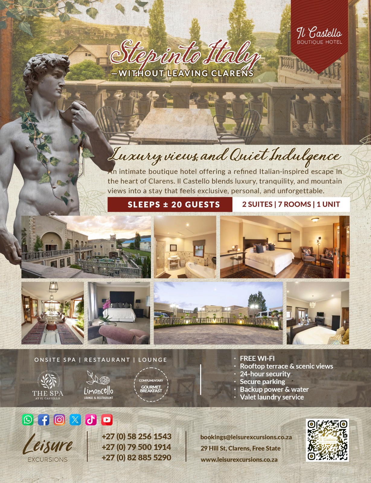 Il Castello is an intimate boutique hotel. This exquisitely designed Clarens hide away will provide you with a little taste of Italy