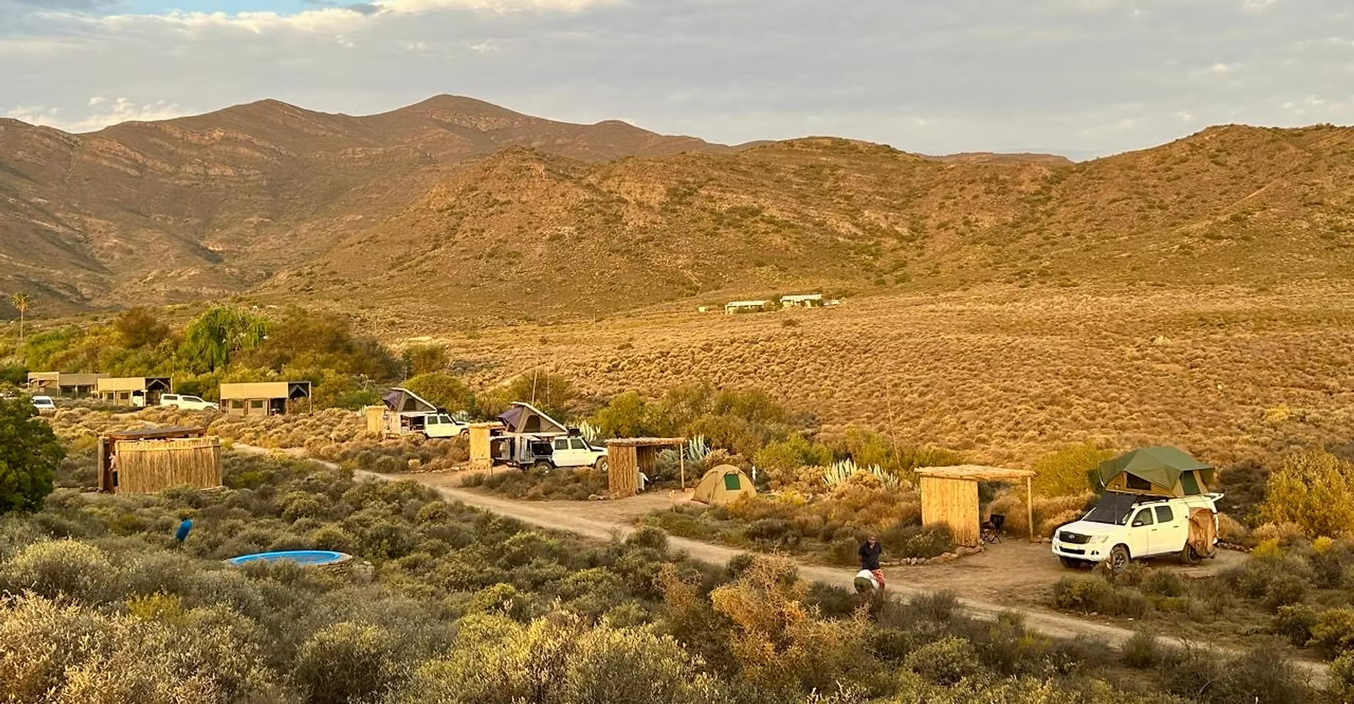 Camp under the vast Karoo skies with minimal facilities, including rustic outdoor showers, flush toilets, and a camp plunge pool. Wake to the sounds of nature and watch spectacular sunsets each evening.