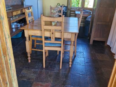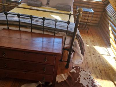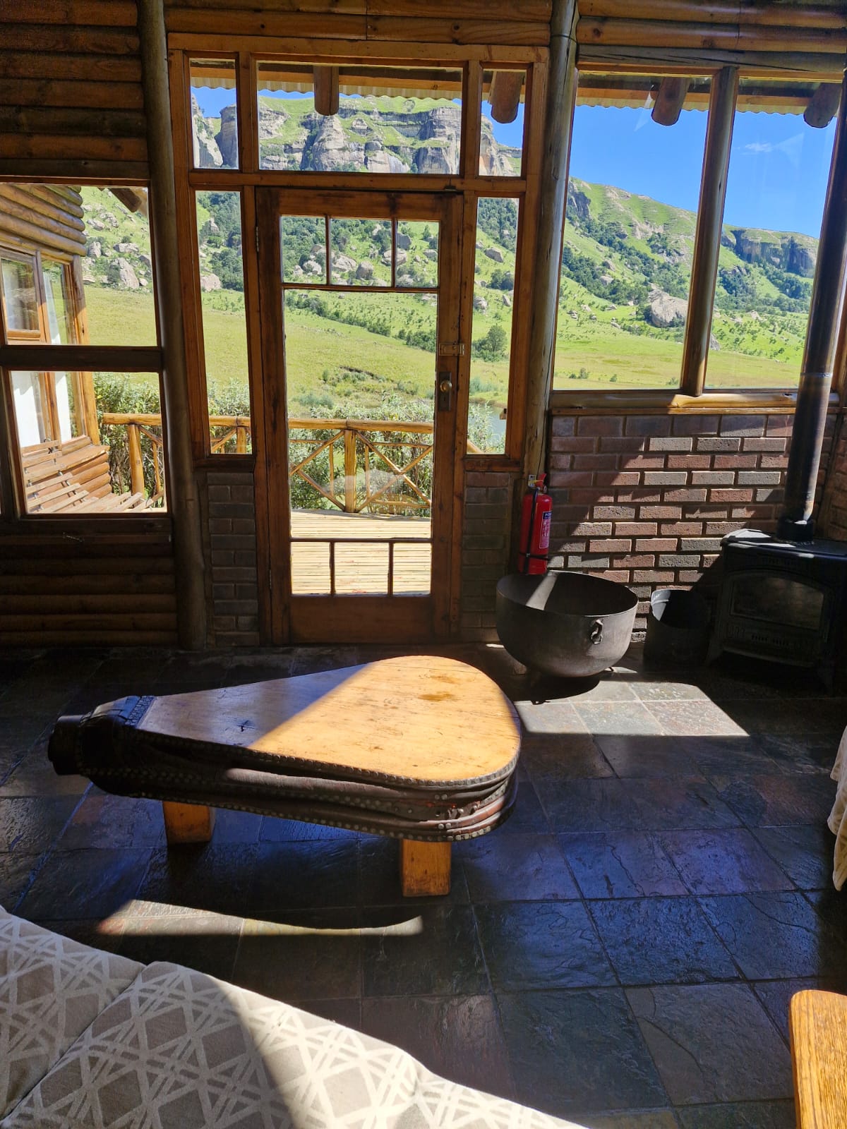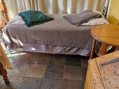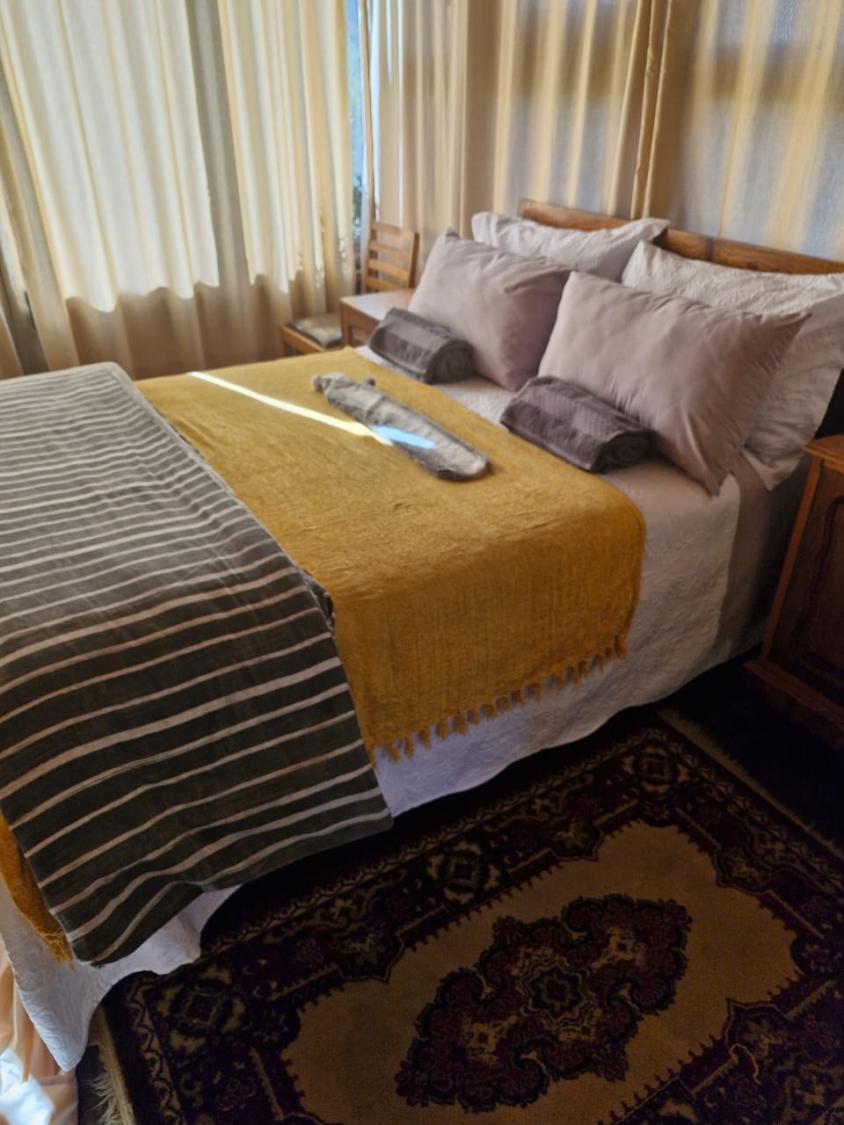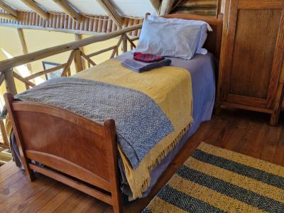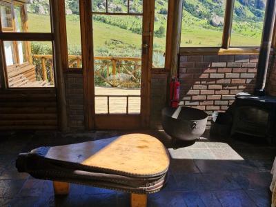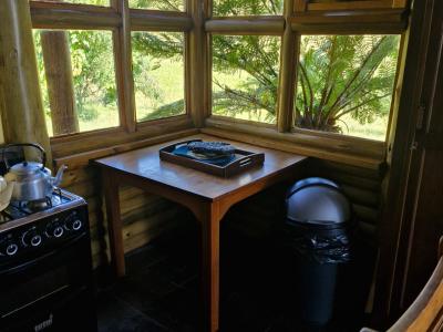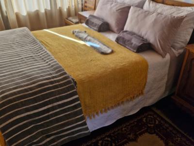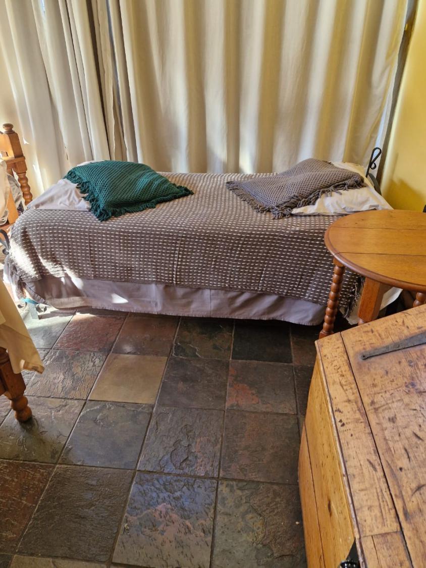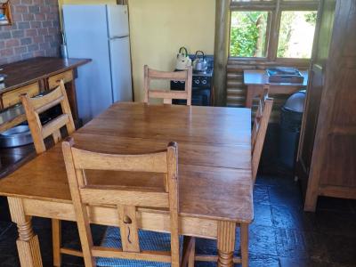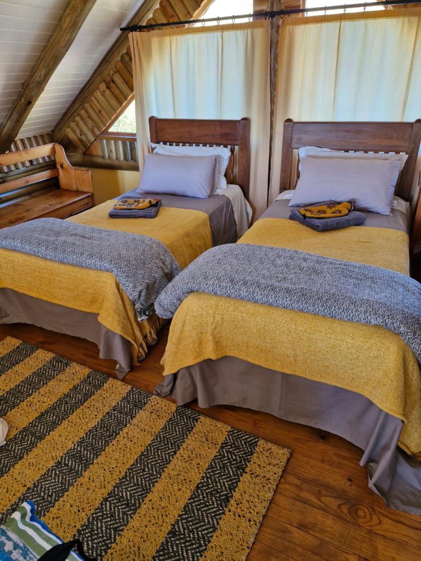 This charming accommodation comfortably sleeps up to six guests, boasting a delightful blend of modern convenience and rustic charm. Upstairs, you'll find two cozy rooms—one furnished with a comfortable double bed and the other with two single beds, perfect for families or groups. Downstairs, the inviting lounge, kitchen, and dining area offer a welcoming space to relax, with an additional room featuring two single beds and a breathtaking view of the mountain majestically reflected in the nearby dam. The fully equipped kitchen ensures you have all the essentials, with cutlery, crockery, and cooking utensils at your disposal. A fireplace and braai area add a touch of warmth and outdoor enjoyment, while the shower and toilet facilities cater to your comfort. This unique retreat also features eco-friendly solar power, a gas fridge, stove, and shower geysers, complemented by candles and oil lamps to create a serene ambiance.