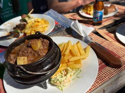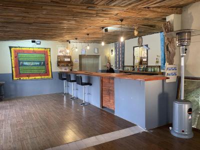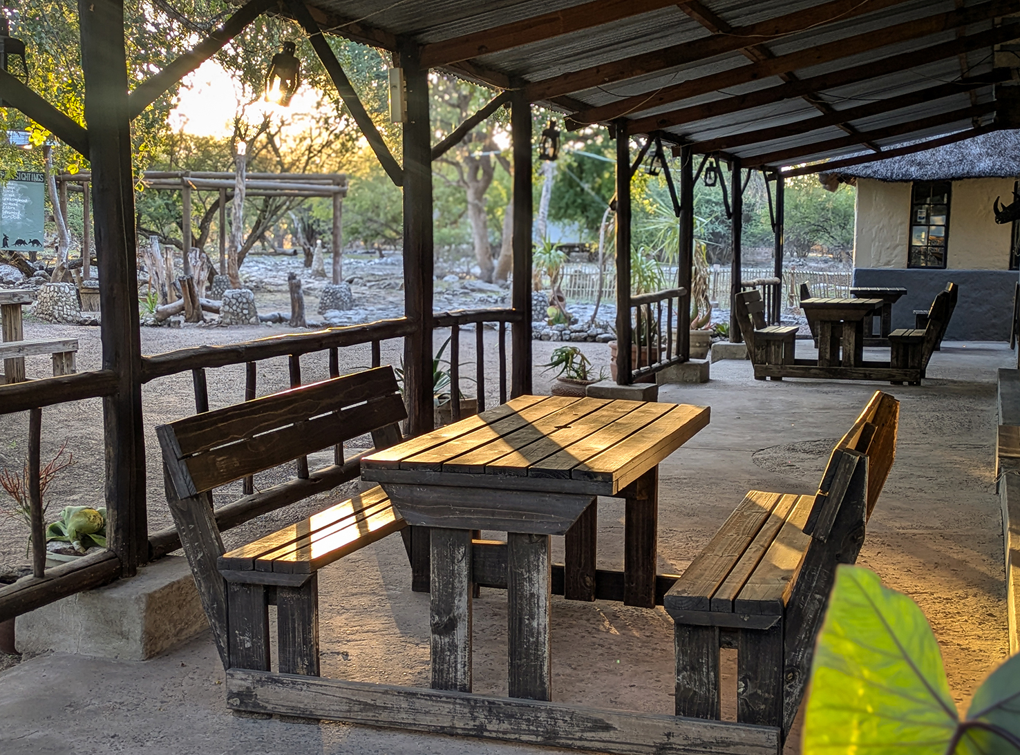 Our cozy on-site restaurant and bar, The Rampant Aardvark, overlooks the pan and waterhole, offering a relaxing dining experience.