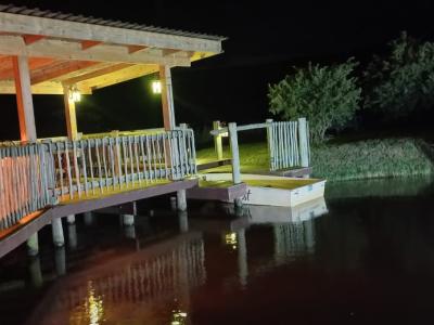 - Boat: There is a bass boat with oars for your fishing outing.