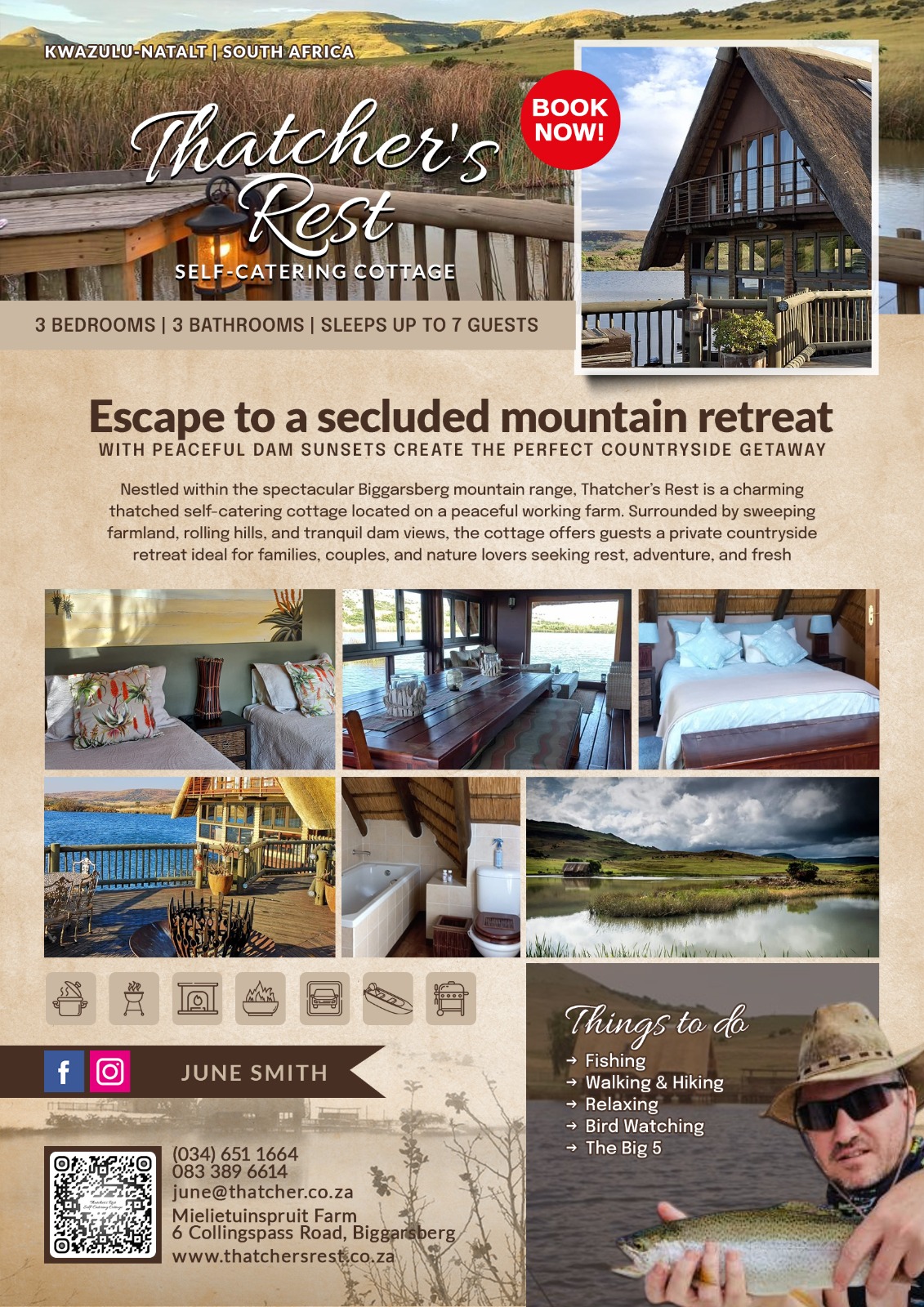 Thatcher’s Rest is a delightfully secluded self-catering cottage situated on a working farm and surrounded by the serene splendour of the Biggarsberg.