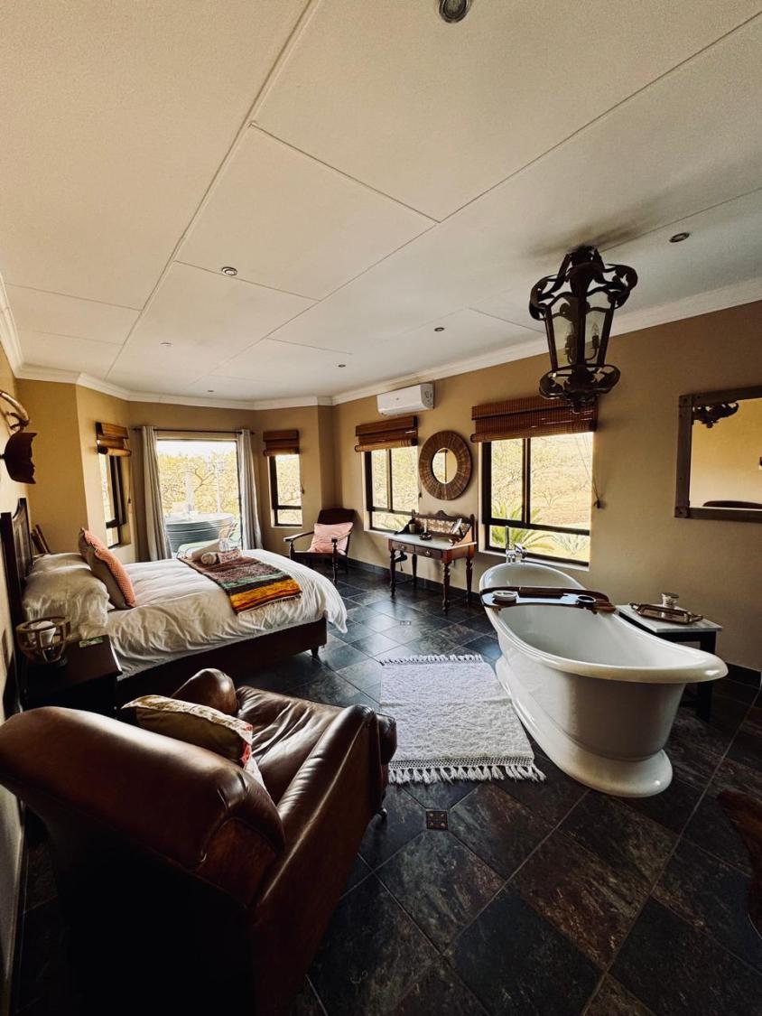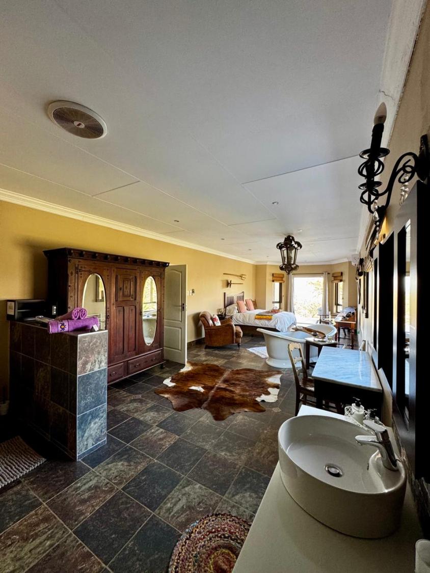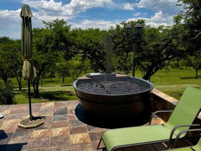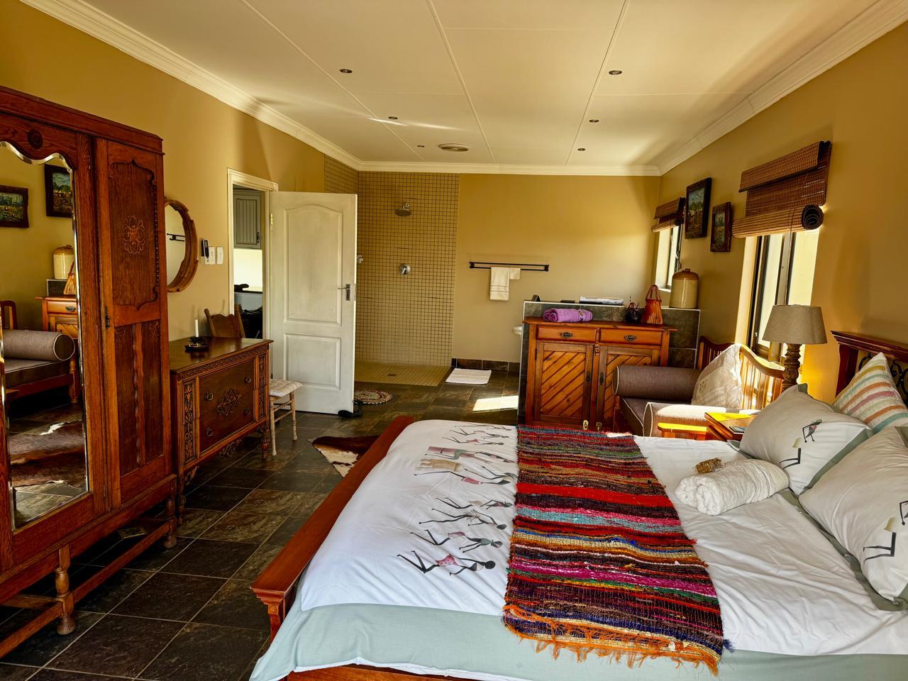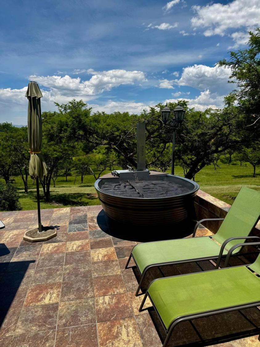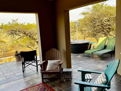 The property has an outdoor dining area with built in braai, KolKol Hot tub overlooking grazing animals.