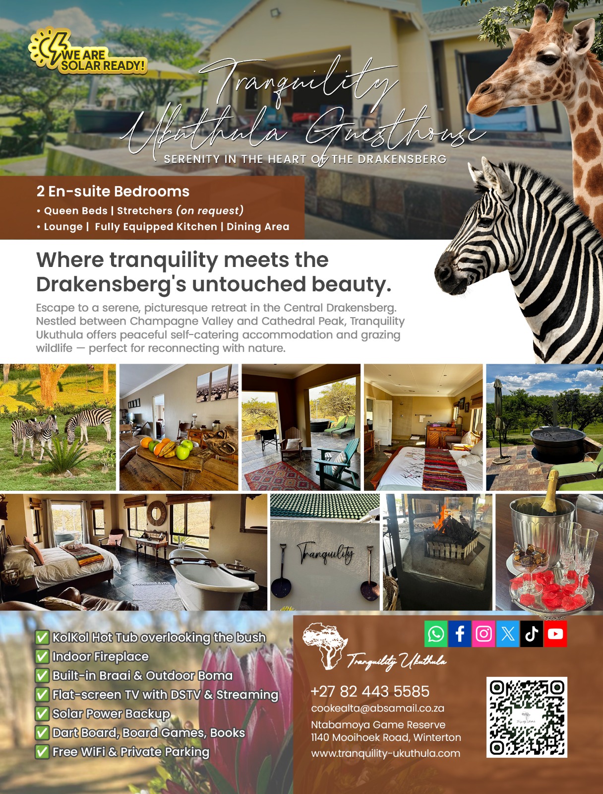 Our tranquil haven is situated between Champagne Valley and Cathedral Peak.