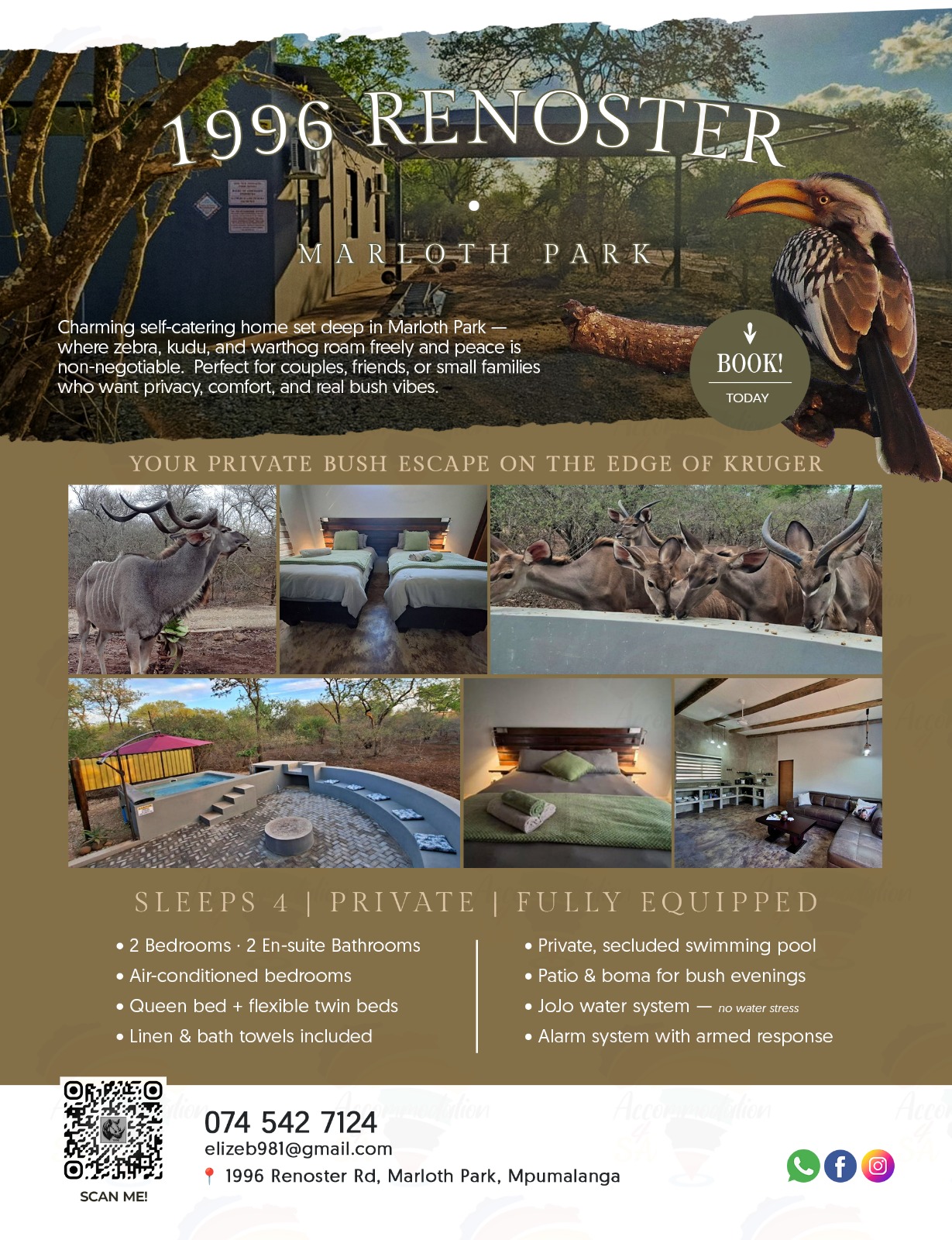 1996 Renoster @ Marloth Park offers charming self-catering accommodation in the heart of Marloth Park, a serene wildlife haven on the border of Kruger National Park.