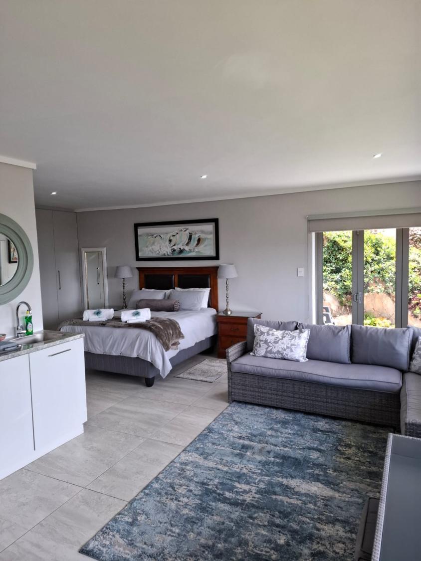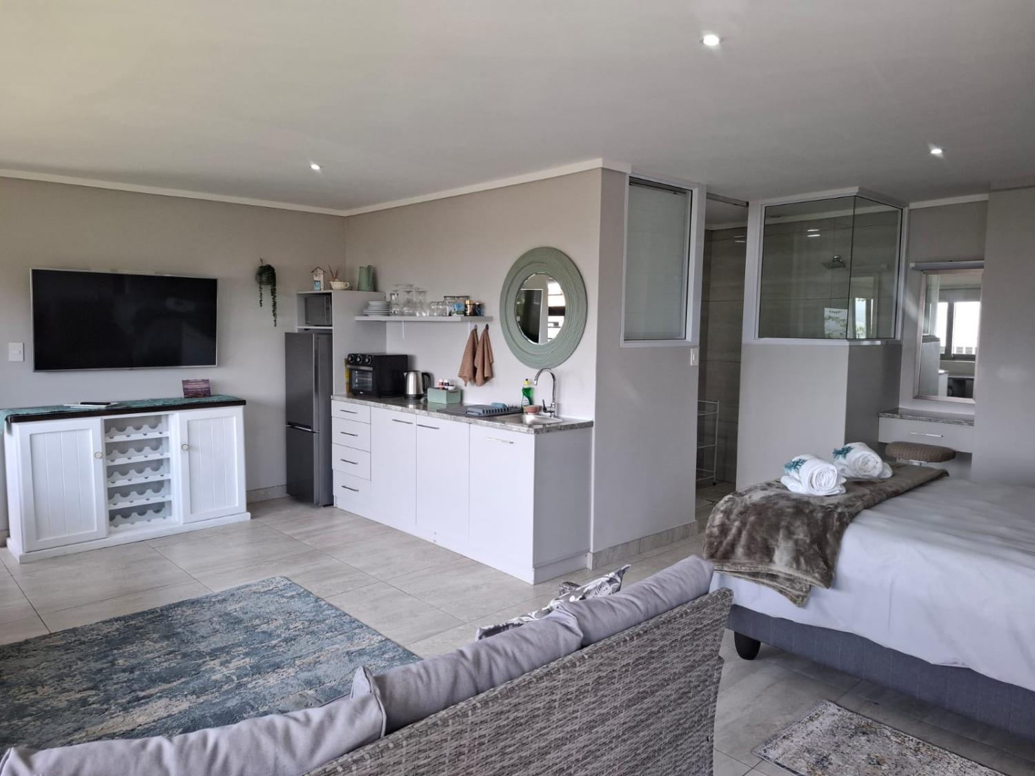 Enjoy a contemporary open-plan living space with large sliding doors that expand the area and offer stunning views, perfect for enjoying a sundowner on the open balcony.
