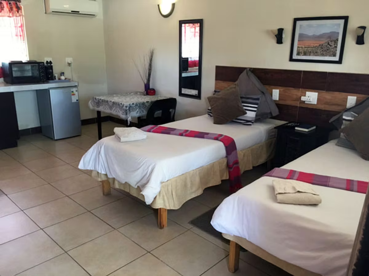 Conveniently situated in Opuwo's main street, we're within walking distance of shops, offices, hospitals, and other amenities. Our location makes us an ideal base for exploring Kaokoland, including Epupa Waterfalls, Himba villages, and Desert Elephants.