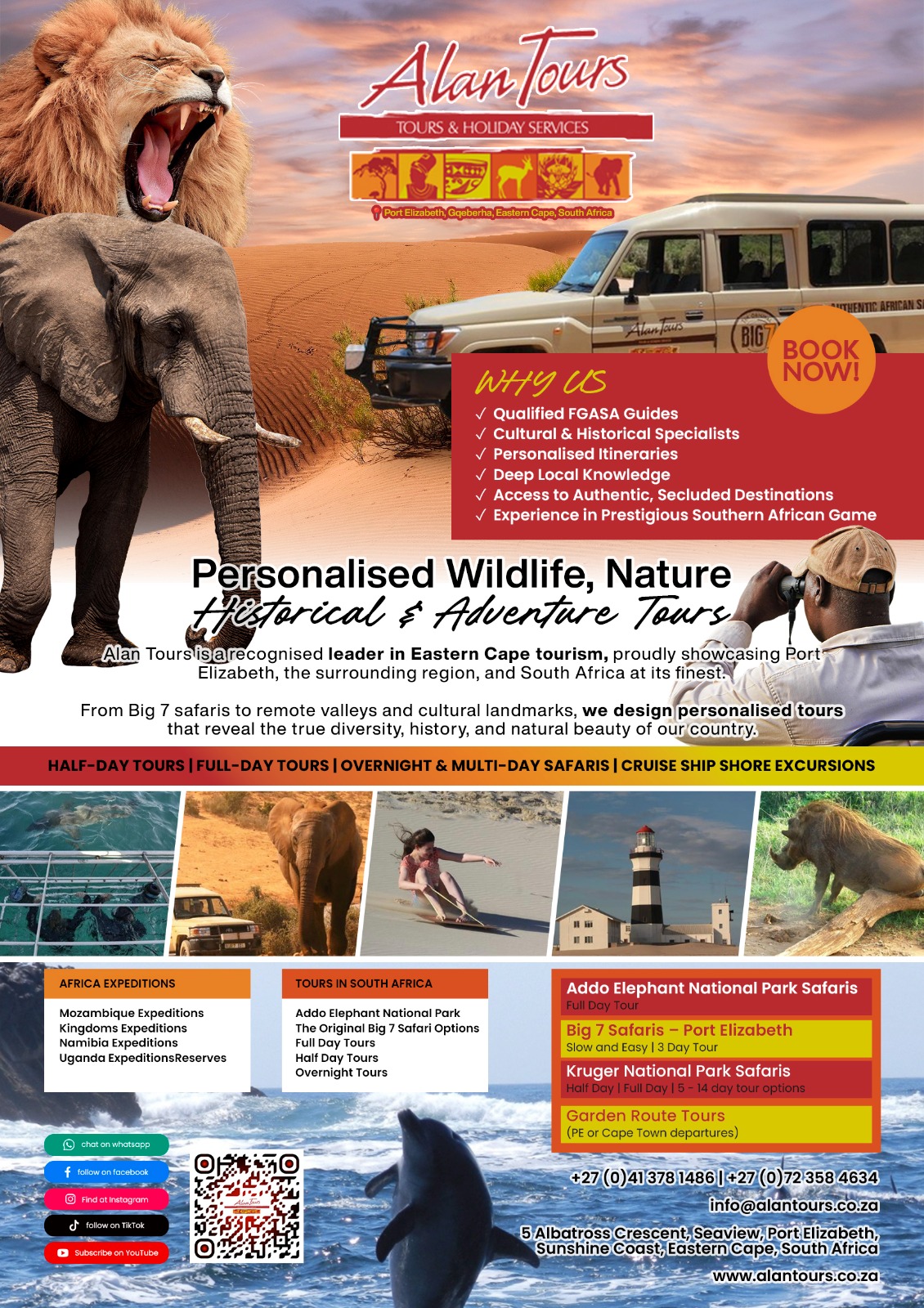 Alan Tours, a recognized leader in Eastern Cape tourism, takes great pride in showcasing Port Elizabeth, the region, and South Africa itself.