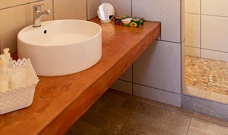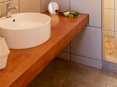- Toilet and shower with hot water
