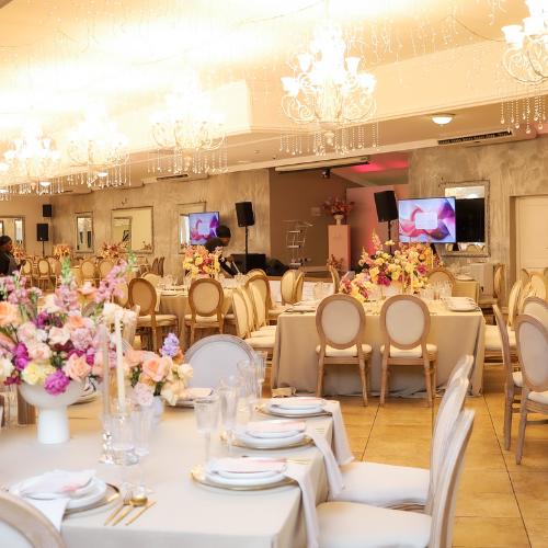 Main venue embodies romance, elegance and beauty. Décor allows for beautiful photographs.