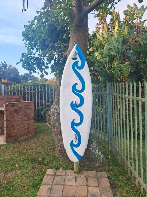 Our signature outdoor shower for you to enjoy pre or post beach, or pool, in fact, lets just say anytime you feel like it, is our unique Surfboard Shower.