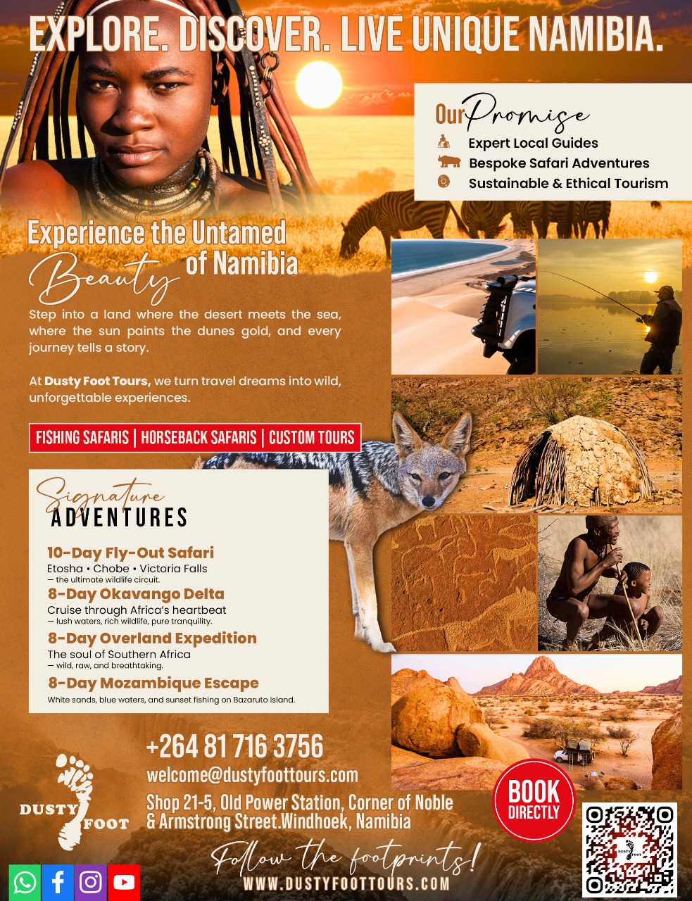 At Dusty Foot Tours, we're passionate about creating unforgettable experiences for our guests. As a leading tour operator in Namibia, we've been crafting bespoke safari packages and guided expeditions for travelers from around the world.