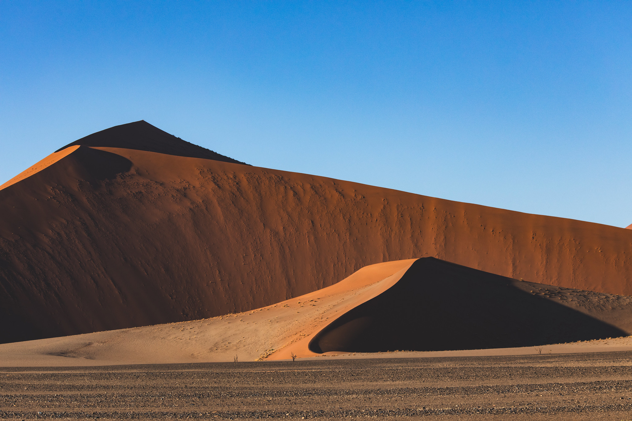 Experience the vast expanse of the Namib Desert, where towering sand dunes meet the sky.
