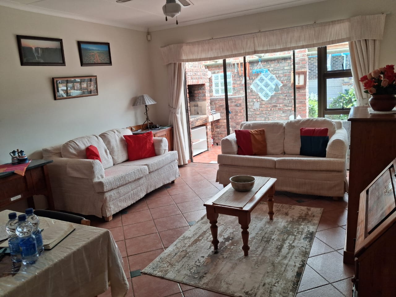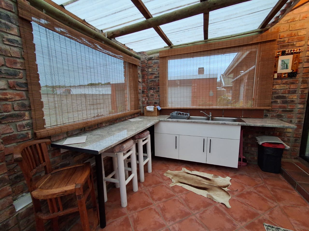 Lounge/diningroom/fully equipped kitchenette with undercover braai/bbq area on stoep/verandah.