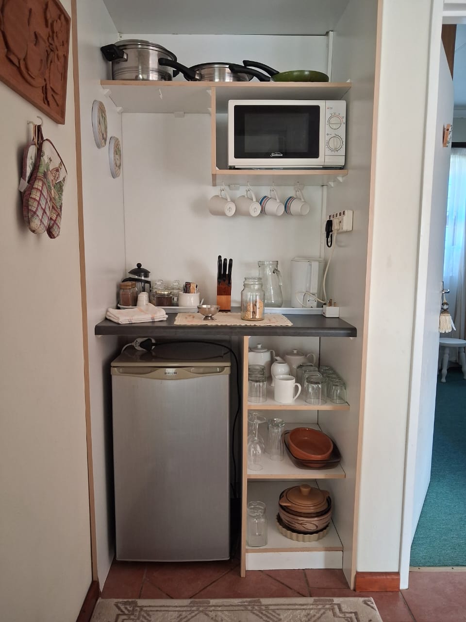 Coffee, tea, rusks and welcoming basket with water supplied on arrival.