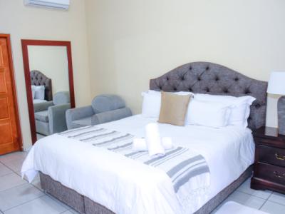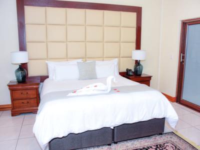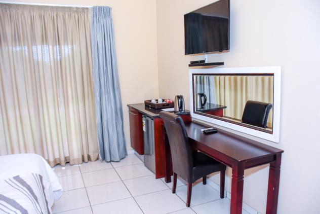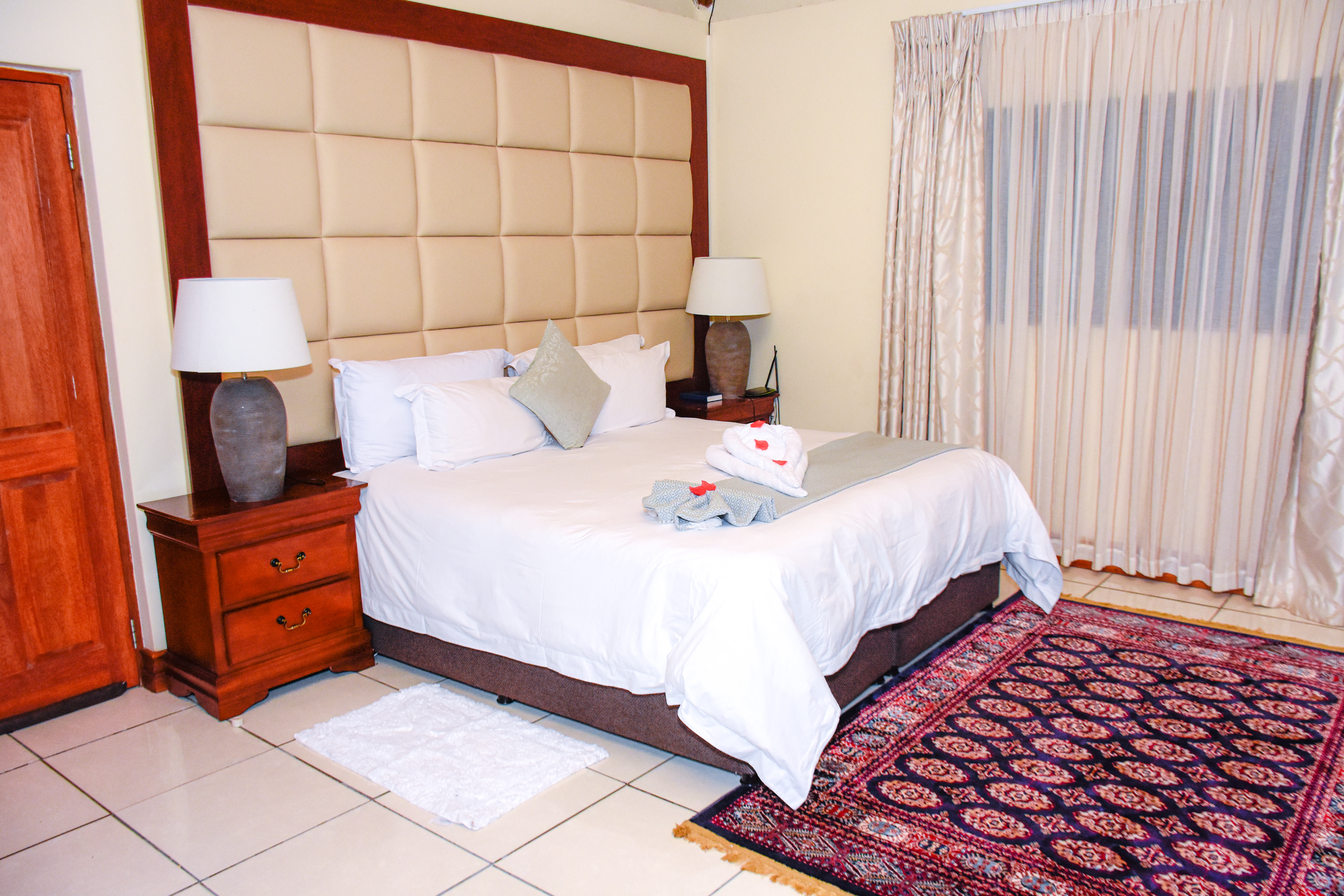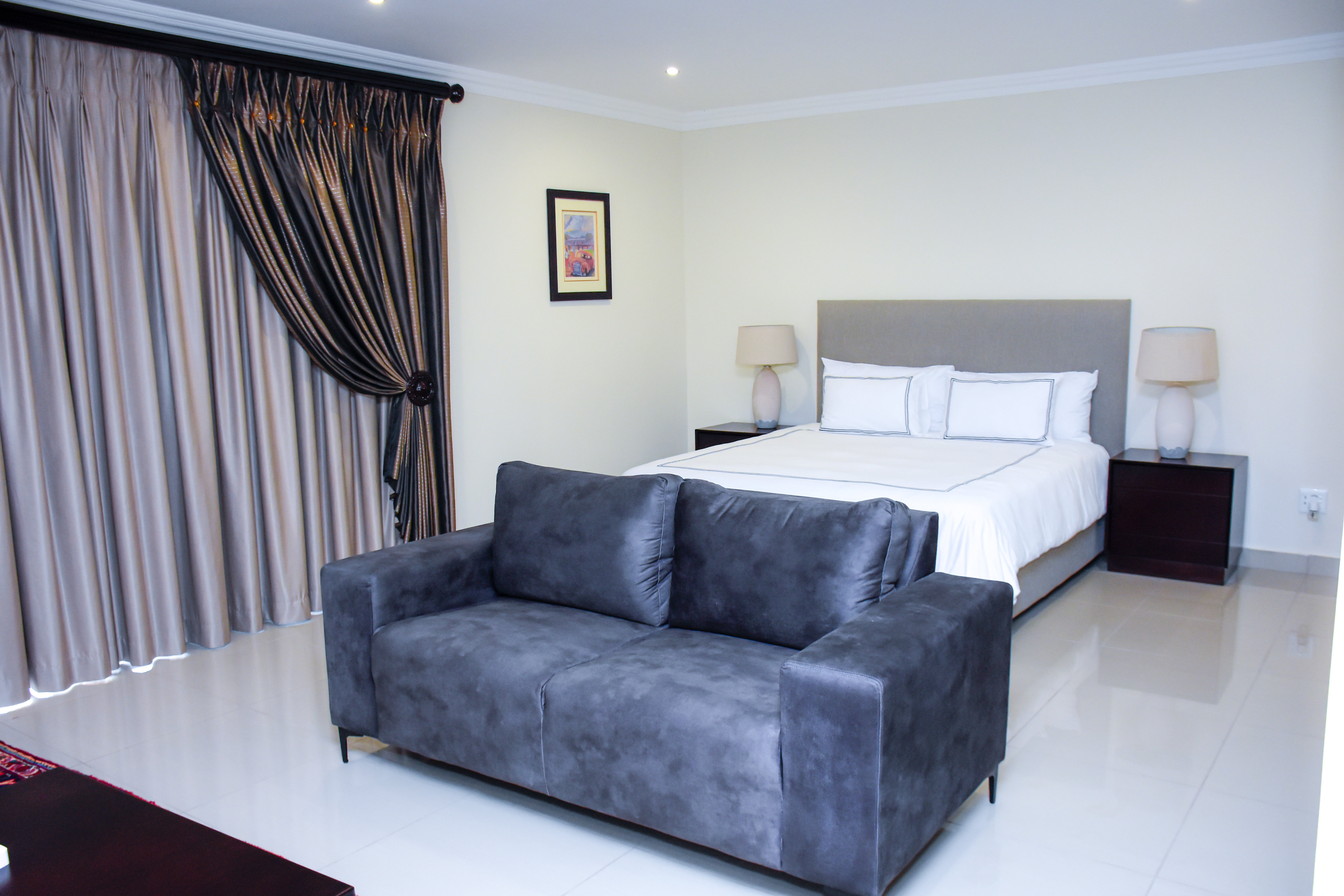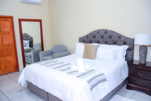Each room is equipped with modern amenities, including air conditioning, DSTV, Wi-Fi, and tea and coffee facilities.
