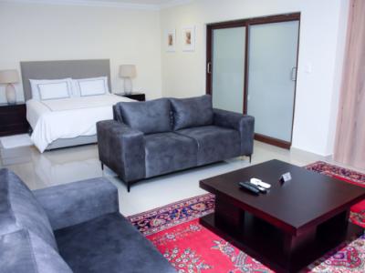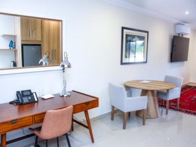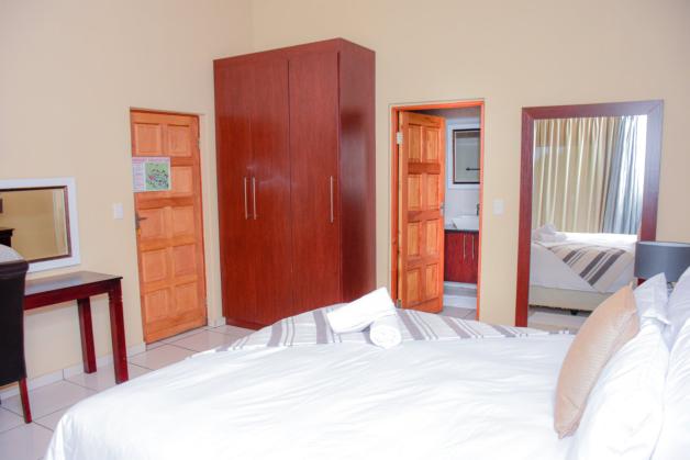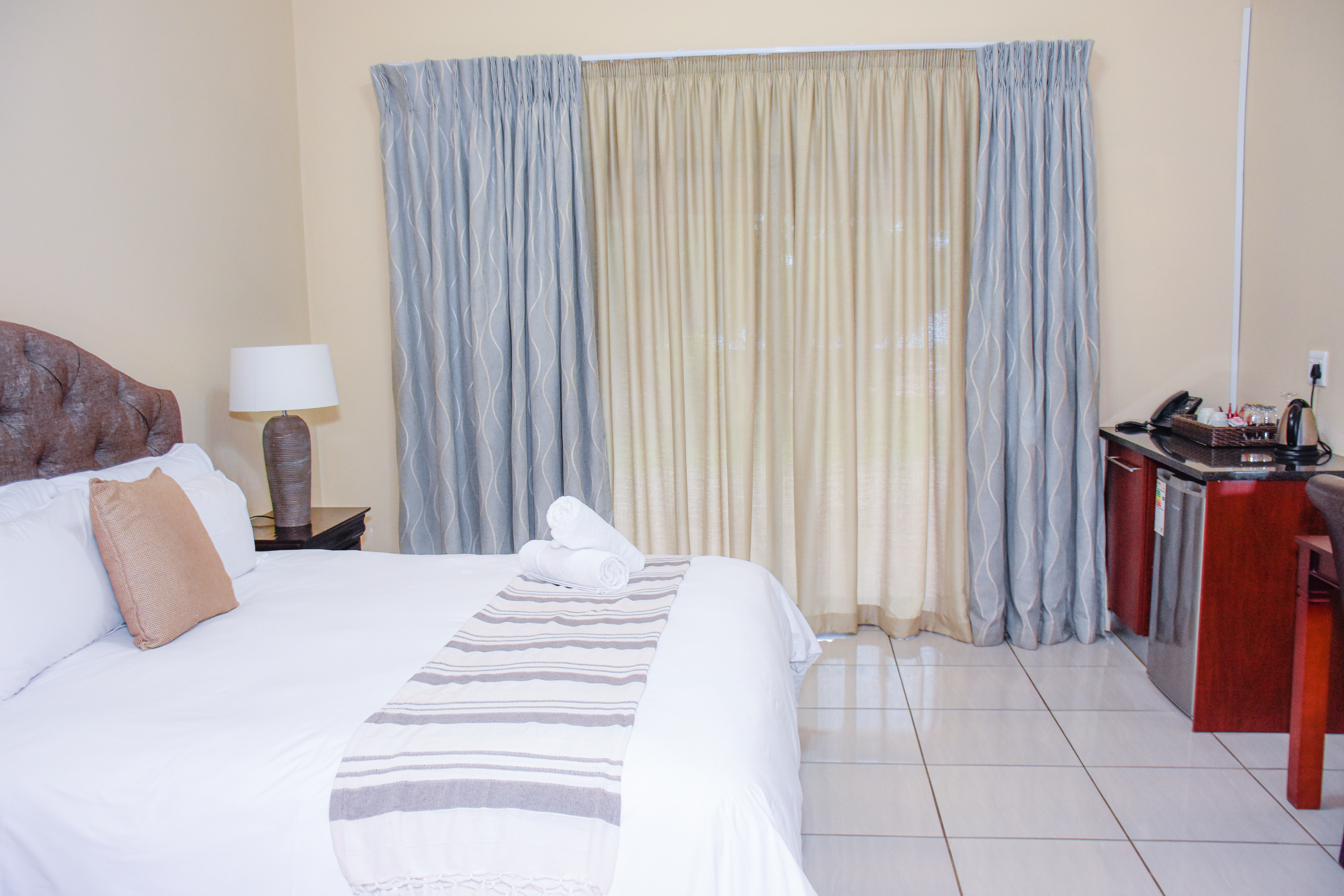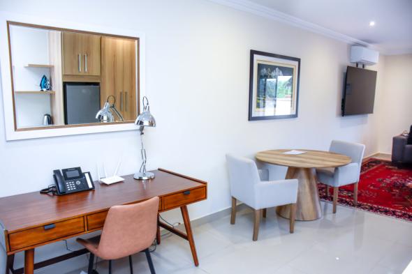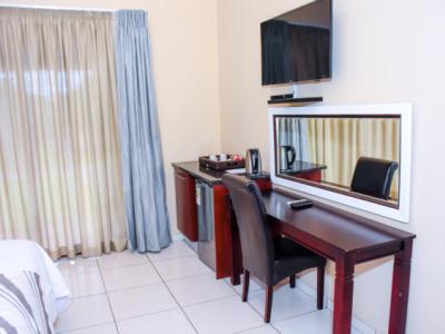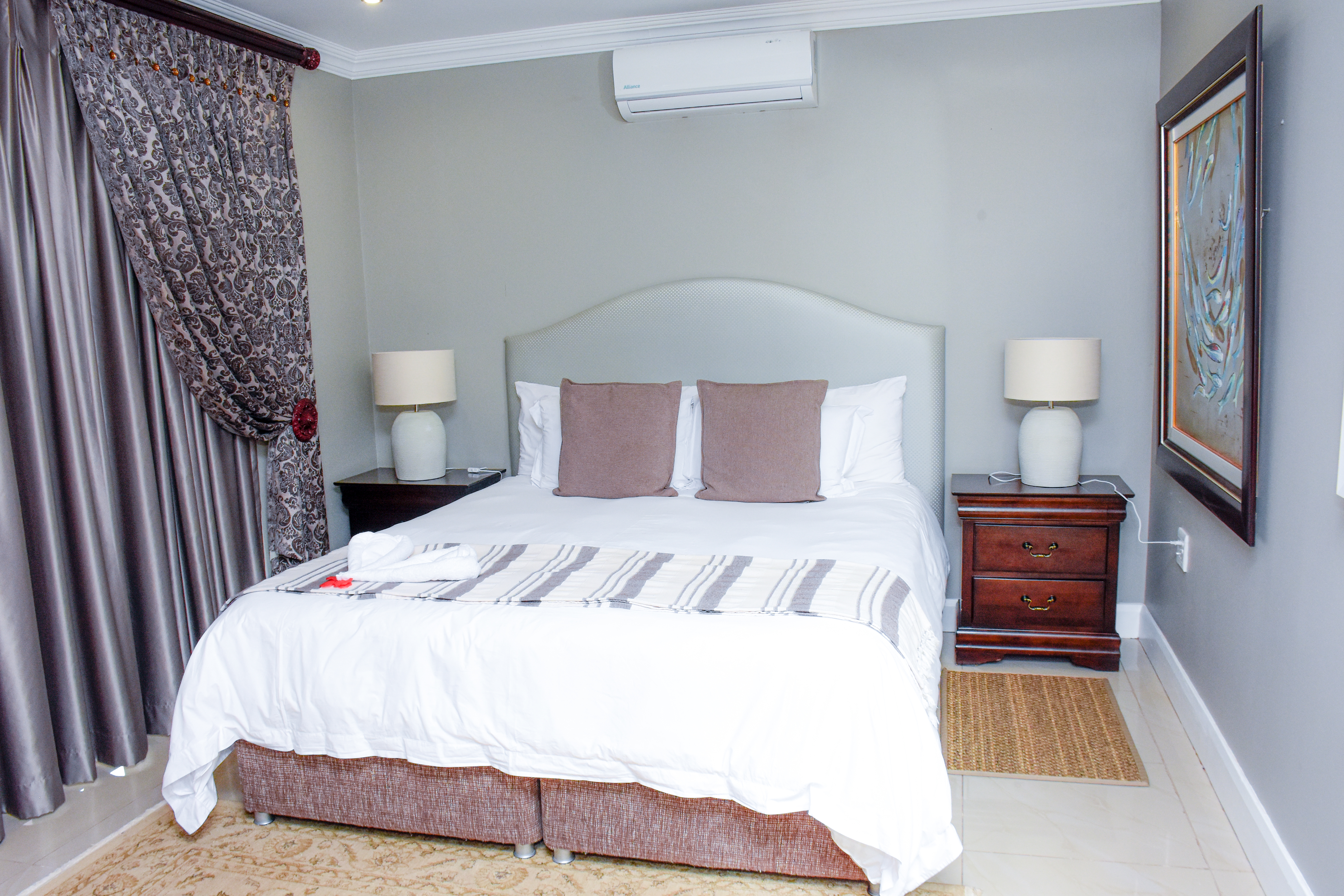 Each room is equipped with modern amenities, including air conditioning, DSTV, Wi-Fi, and tea and coffee facilities.