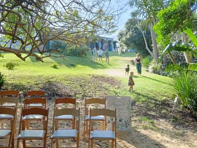 A short 50m stroll, through a lush garden, sees you with your toes in the sand.