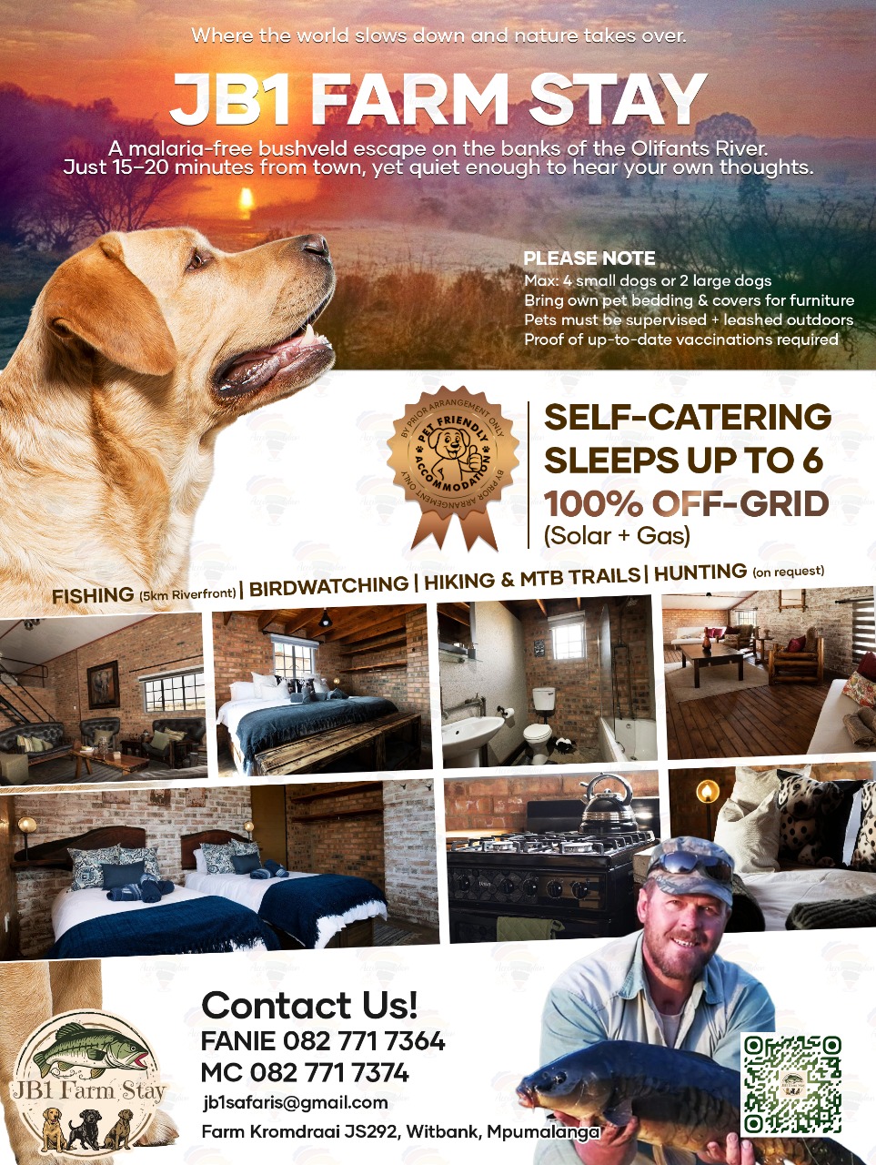 Whether you’re here for birding; biking – hiking - walks, fishing, hunting, or simply a peaceful family break, our pet-friendly stay offers the comfort of home in the middle of the bushveld.