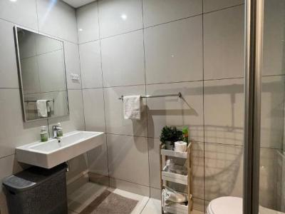 - Bathroom: Modern bathroom with shower and bathtub