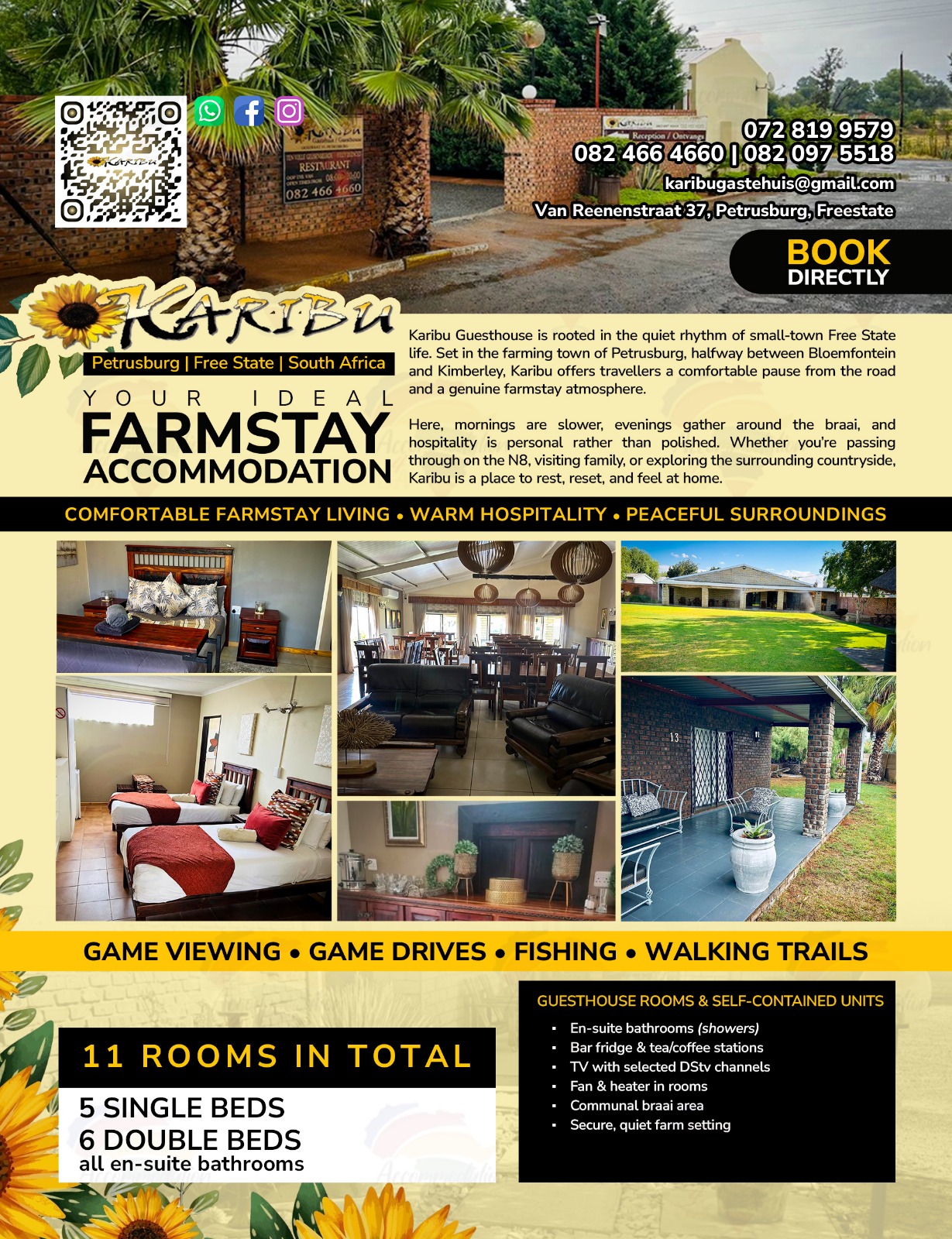 Karibu Accommodation is located in the small farming town of Petrusburg, in the Free State.
