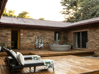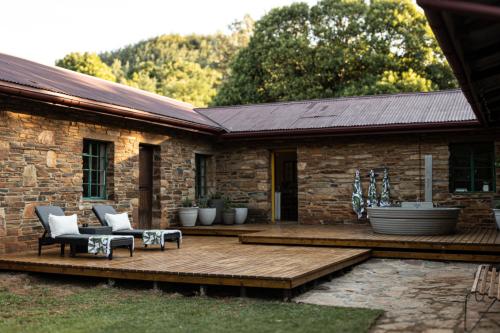 You'll be spoilt with the resident Kingfishers flying past and the occasional Knysna Turaco hopping around in the trees above, not to mention the sounds of the river running past while you spend the evening soaking up the stars in the KolKol wood-fired hot tub.