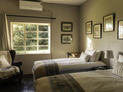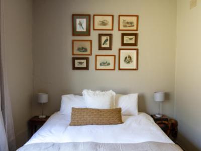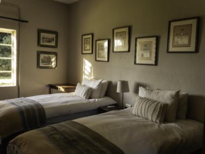 The cottage sleeps 8 comfortably in four rooms, three double and one twin, and is serviced daily by a housekeeper. Bathrooms are shared and include one full bathroom (bath, shower, loo and basin, a seperate loo and an additional seperate shower with basin). The kitchen is fully equipped and additional outdoor cooking facilities include a braai, fire pit and pizza oven.