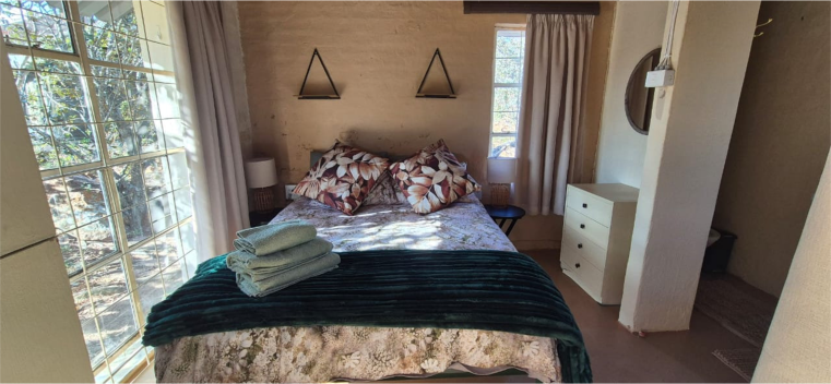 It is built on a hillock with a view of the blue Waterberg and offers one bedroom with a double bed and en-suite bathroom facilities.