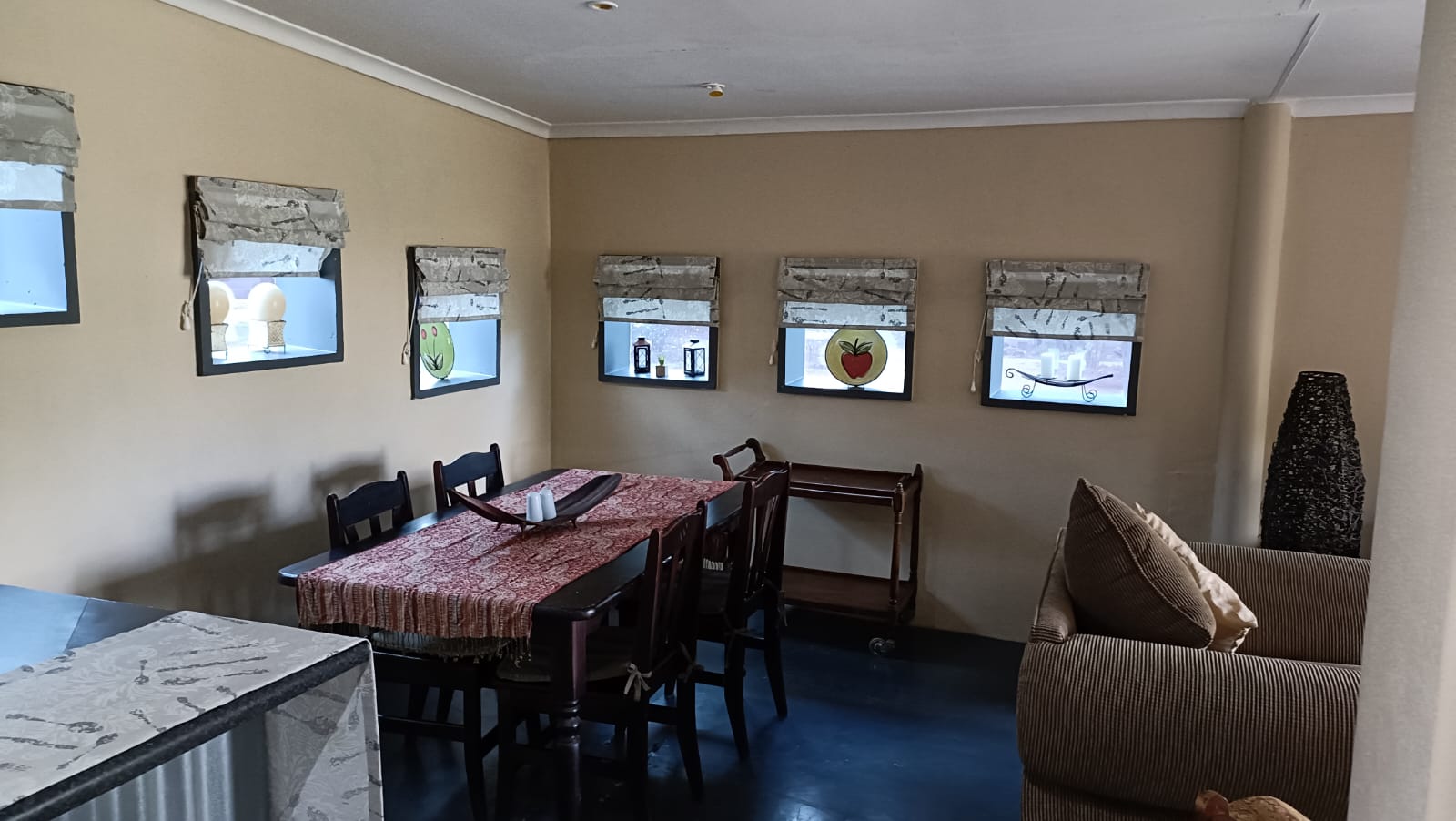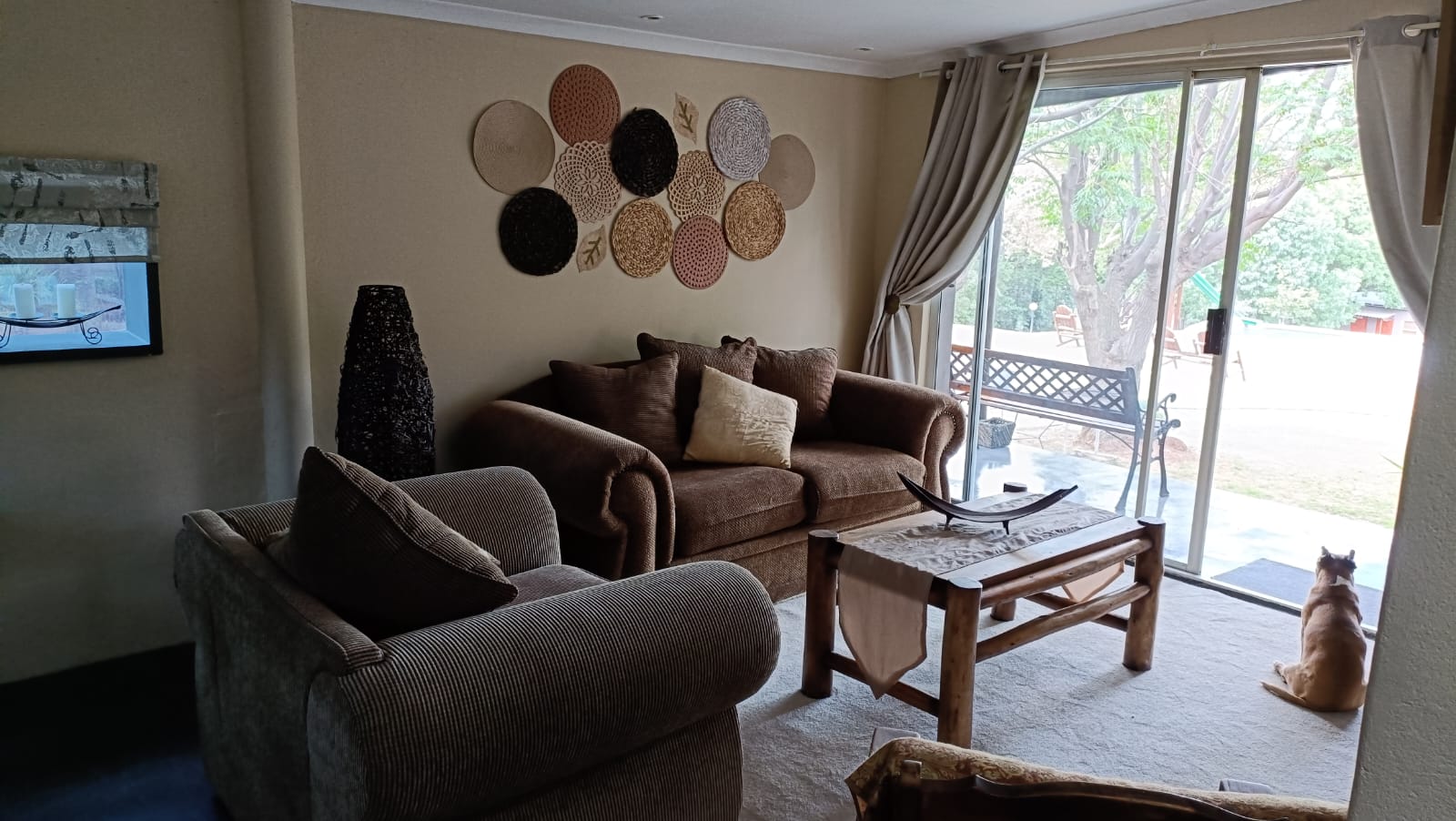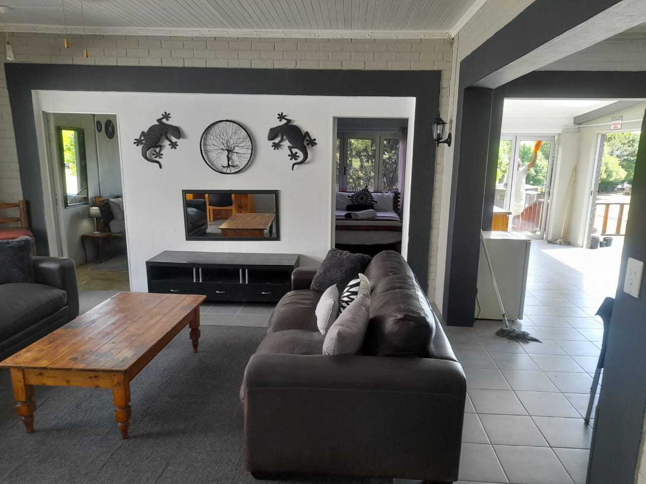 Outside patio and braai, lounge, dining room and games room.