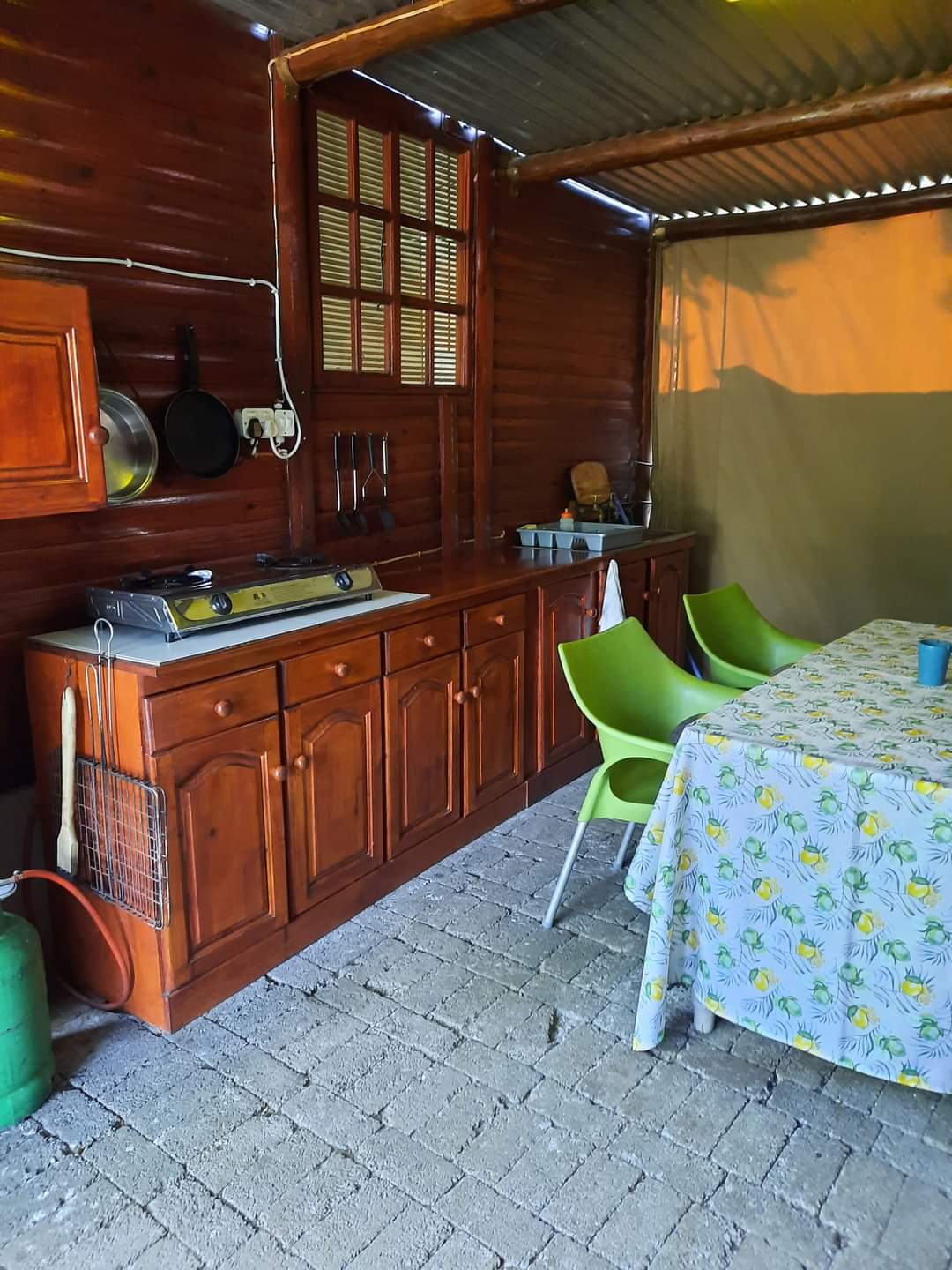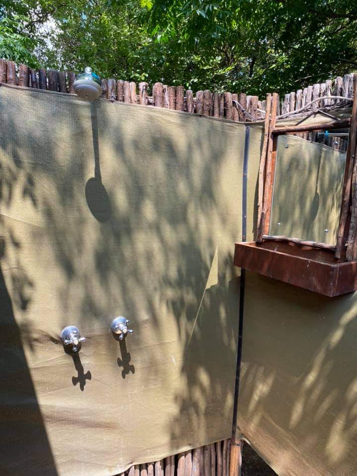 The tent has a fully self-catering kitchen and outside shower next to the tent, as well as a private toilet and basin situated approximately 20m away.