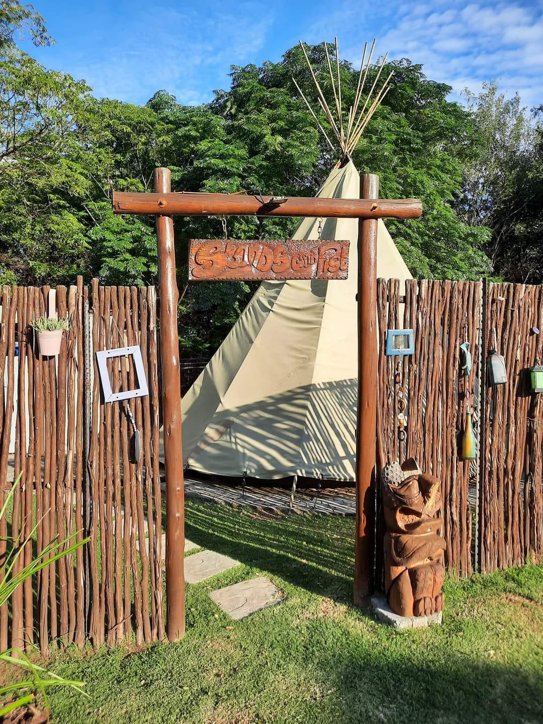 Teepee tents sleep 2 adults (double bed).