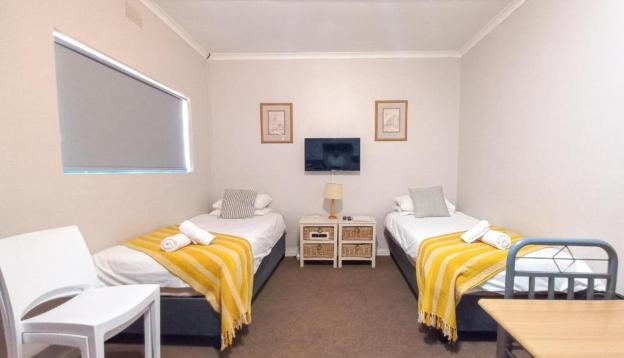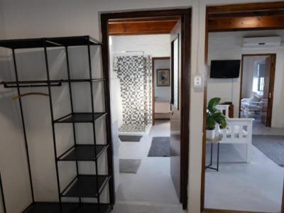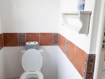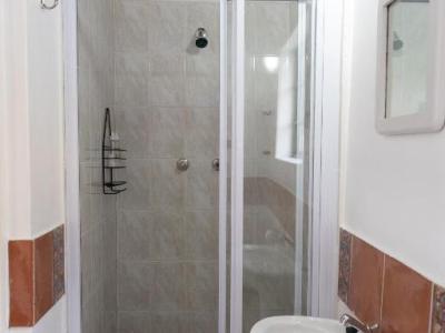 It has a shared bathroom, accessed by a lockable door from each bedroom, that has a bath and a separate shower cubicle. The well-equipped kitchen has a gas stove, fridge, small freezer space, microwave, toaster, and kettle.
