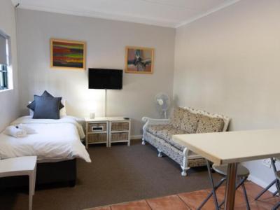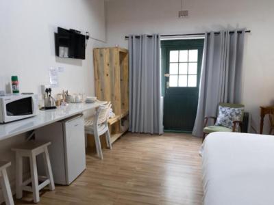 Other amenities in these rooms include a bar fridge, microwave, a TV with a full selection of DStv channels, tea- and coffee-making facilities, and a private entrance.