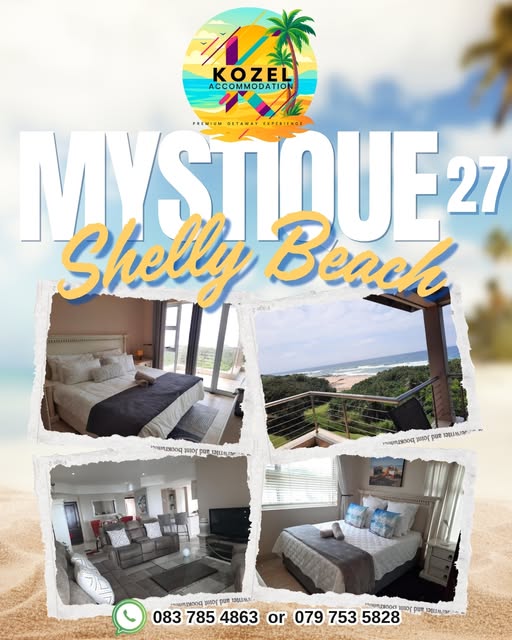 This lovely 1st floor, three-bedroom, 2 bathroom holiday flat is situated in Shelly Beach. 1 queen bed, 1 double bed, 2 single beds.
