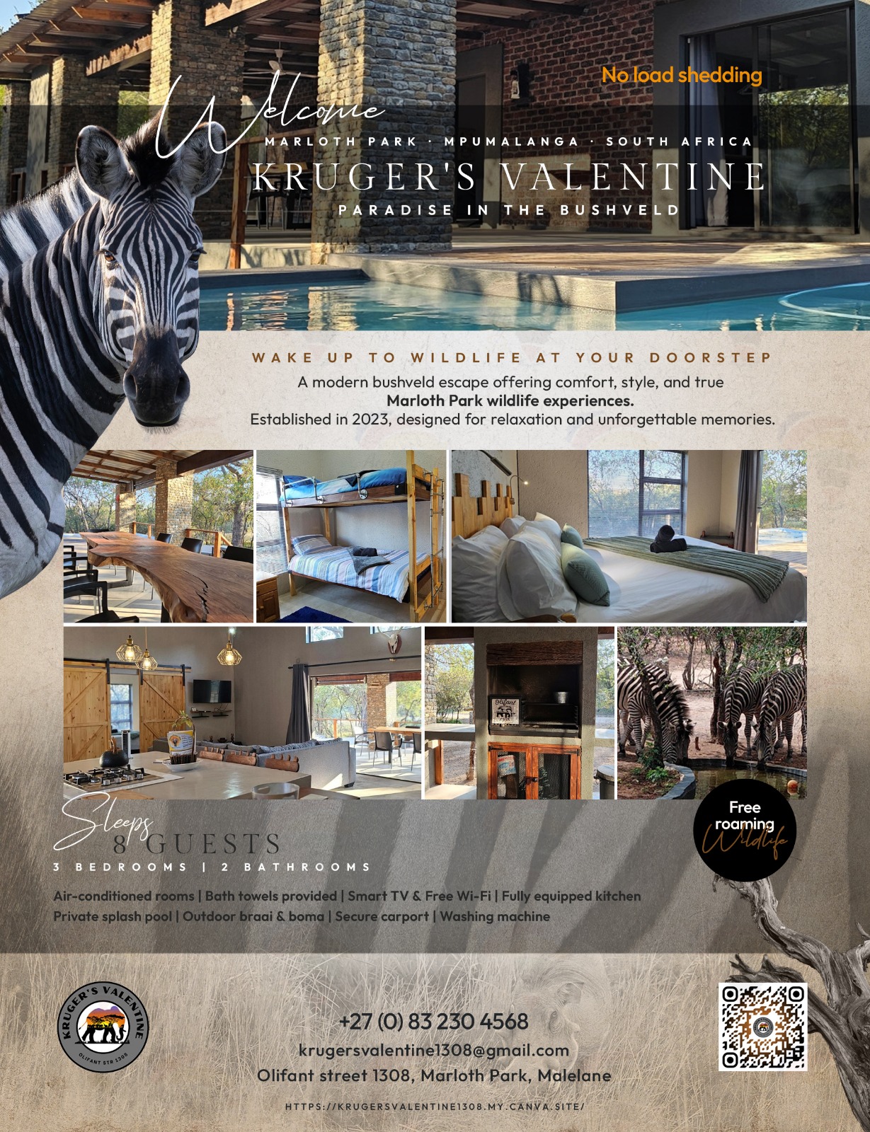 Since opening our doors in 2023, Kruger's Valentine has offered the perfect blend of style, coziness and the relaxing African bushveld atmosphere.