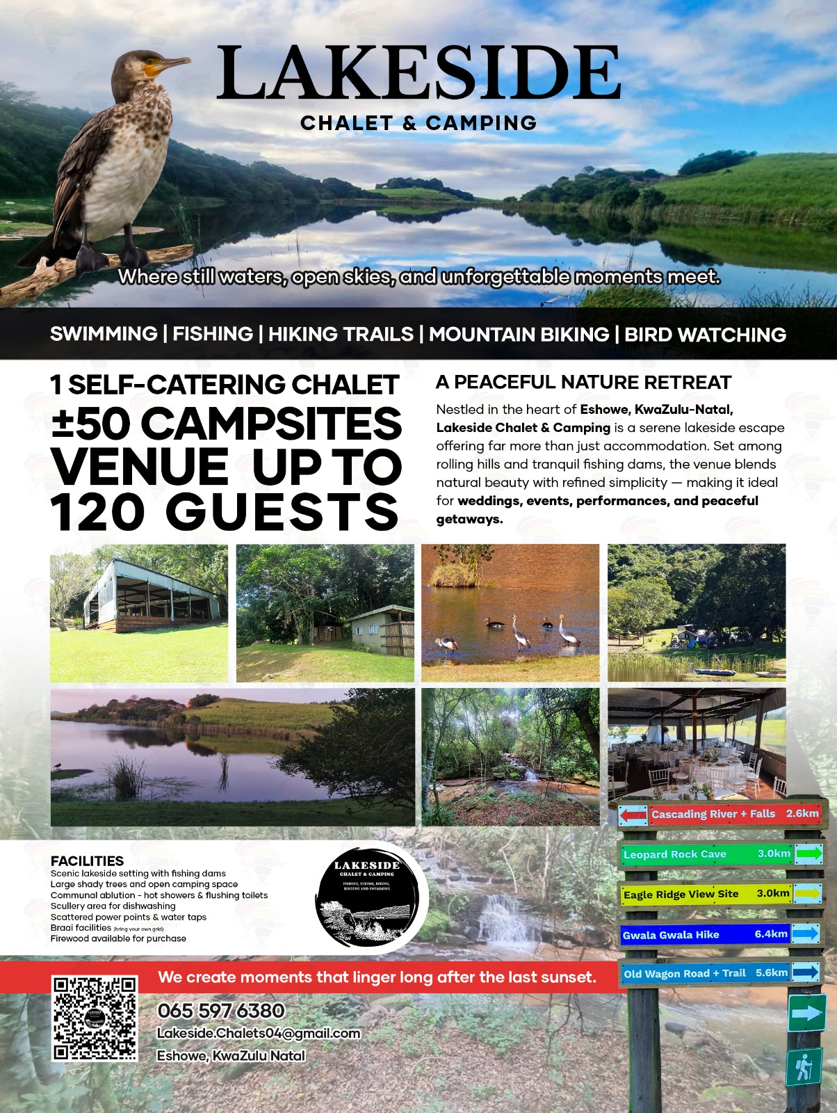 Nestled in the heart of Kwa-Zulu-Natal Eshowe, Lakeside Chalet and Camping is a breathtakingly beautiful wedding venue and performance/event space that offers an unparalleled level of elegance, sophistication, and charm.