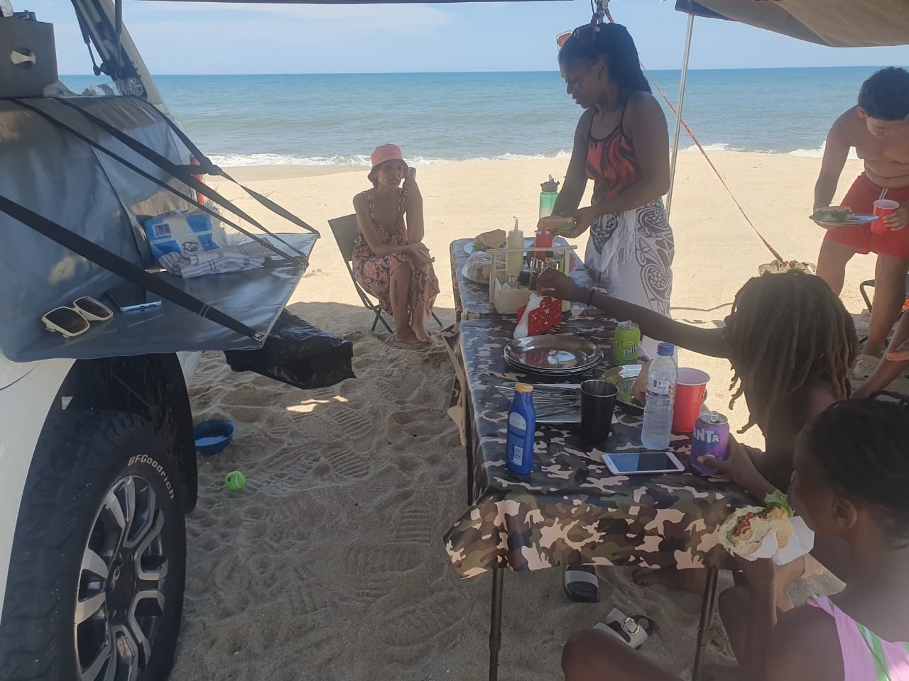 Very popular also is the fully catered beach excursion, which takes 3.5 to 4 hours, where we go right up to Pansy Bay, drive 8km on the beach to the beachfront, all is catered for and braaied for - you just hop right on for your enjoyment!