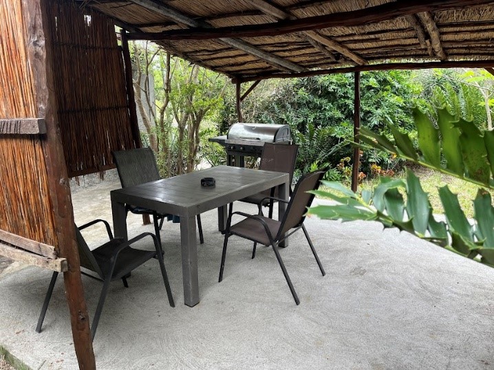 Next to room 3 & 4 is another smaller verandah and kitchen and gas braai under thatch.