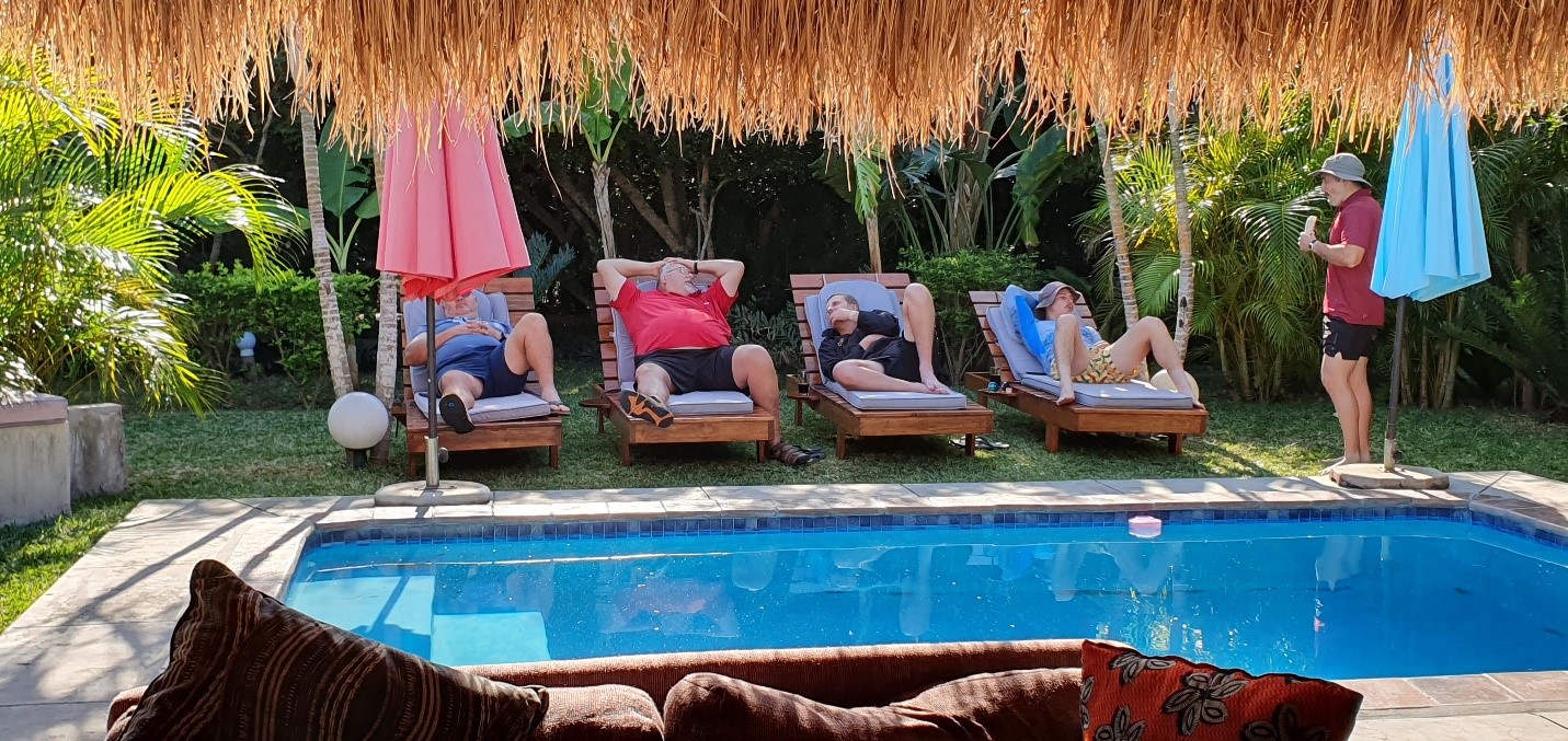 LAKKA LODGE PATIO DINING / LOUNGE OVERLOOKING THE SPARKLING SWIMMING POOL