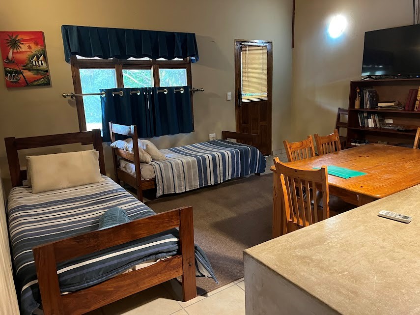 ROOMS Nr 1&2 - Each room accommodates 2 x single beds that can made into a double bed (per request), air-conditioned, with an en-suite bathroom consisting of a shower and a toilet. Very cozy and close to the bar and all amenities, as all rooms are.