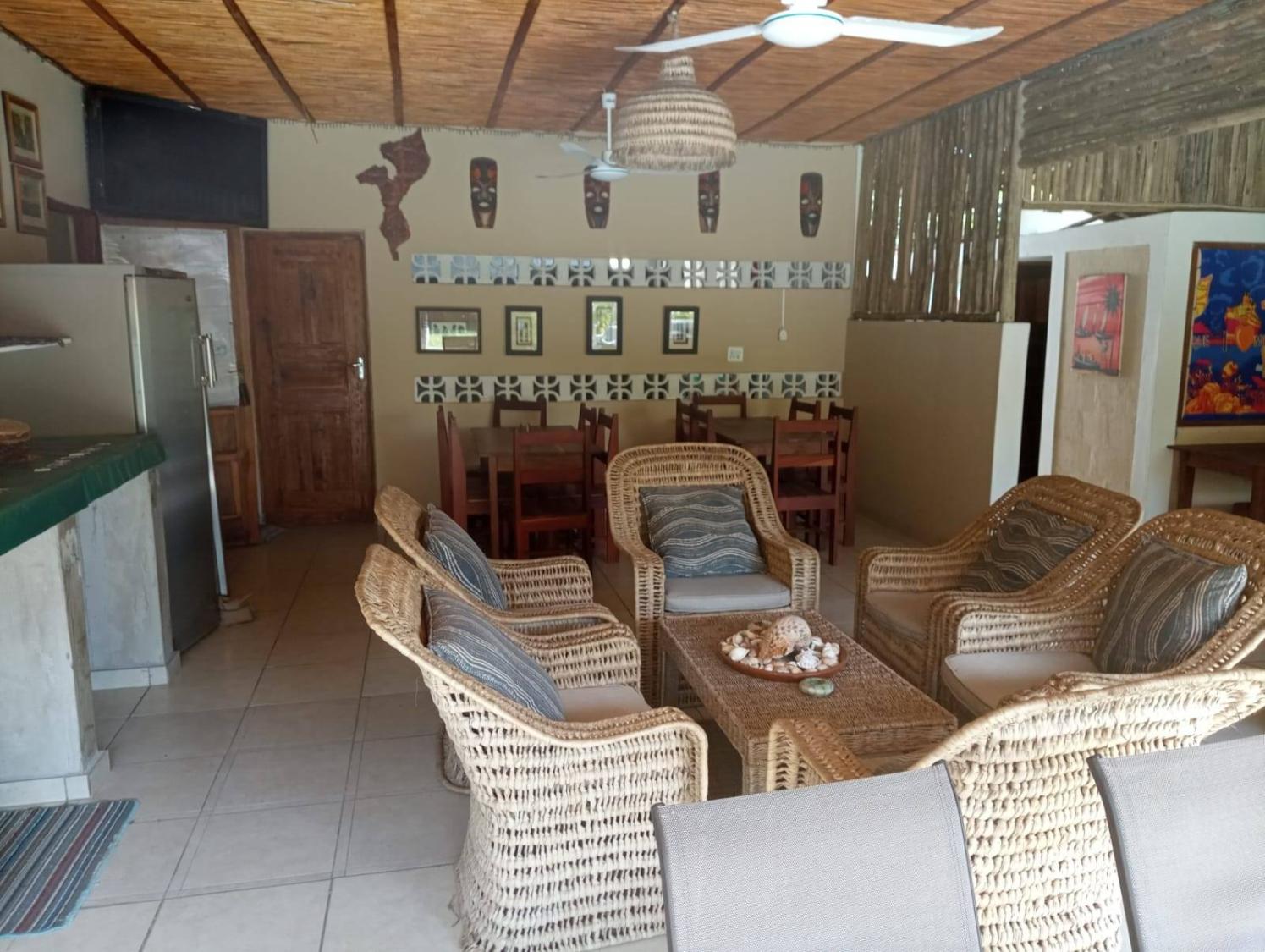 Dining furniture is custom made from indigenous Mozambique zimbirri and zamfuti hardwood.