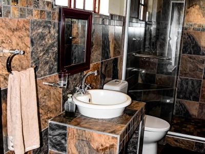 The double rooms all have ensuite bathrooms and the single rooms share a bathroom.