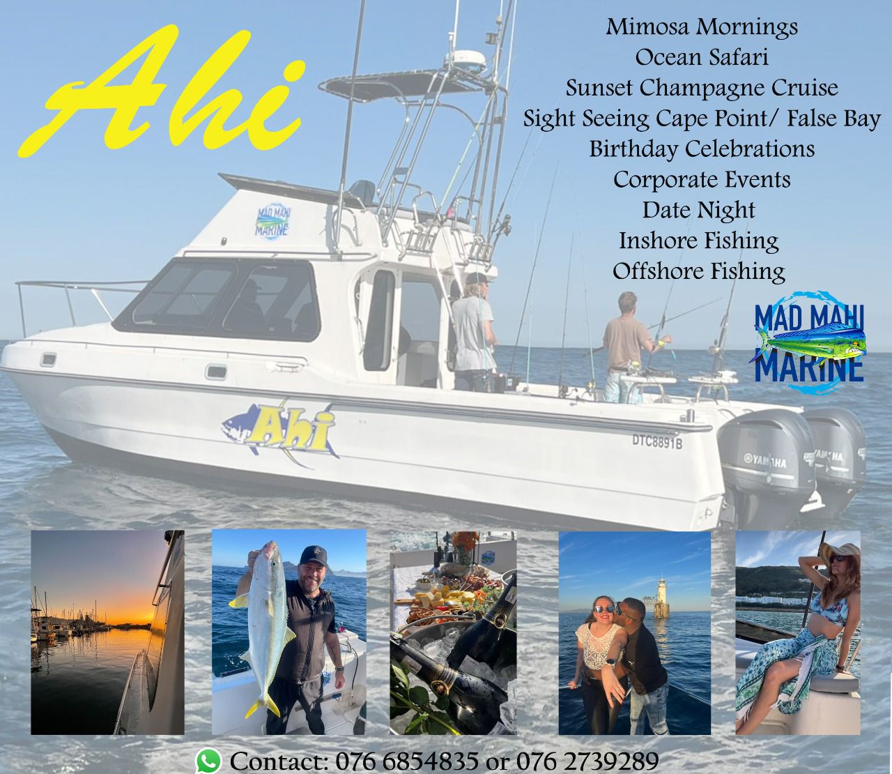 - Departures: All cruises/charters leave Simon’s Town Marina, where Ahi is berthed.