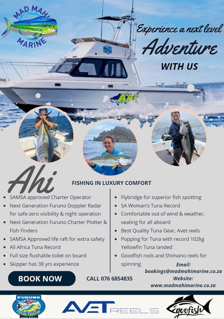 Ready for an unforgettable False Bay experience? Contact Mad Mahi Marine Fishing Charters & Cruises to book your charter/cruise! Whether fishing thrills, scenic voyages, or wildlife encounters appeal – we tailor adventures for you.