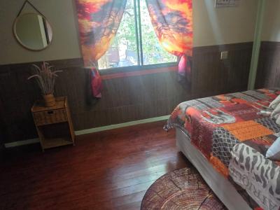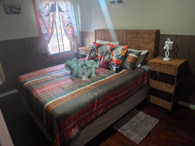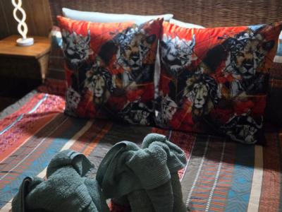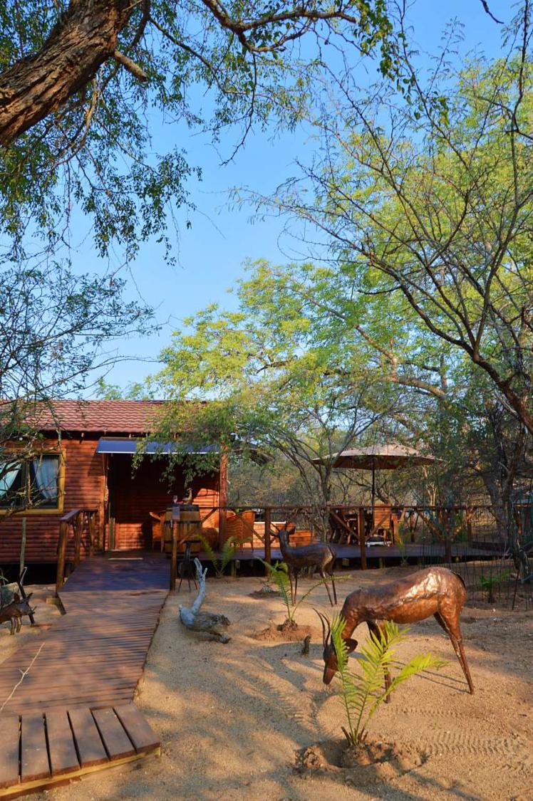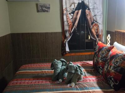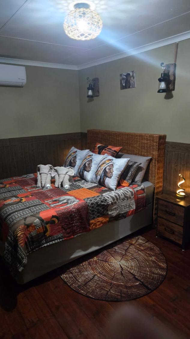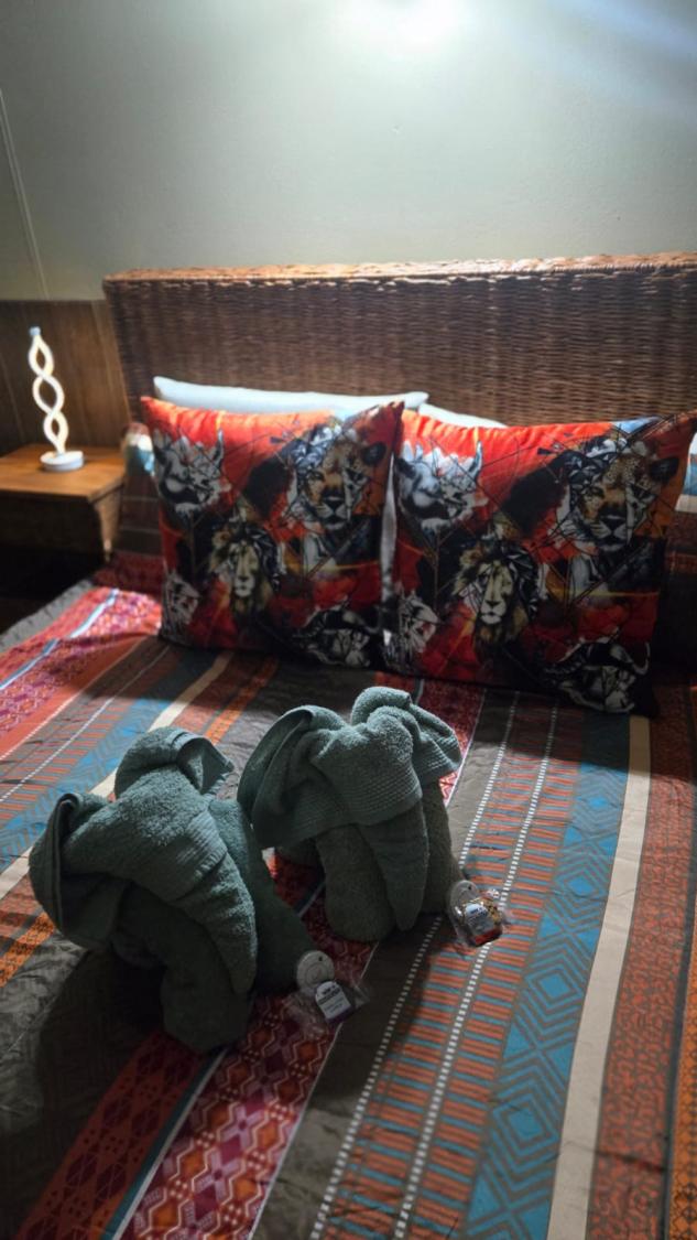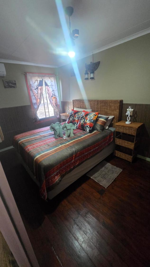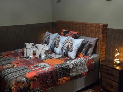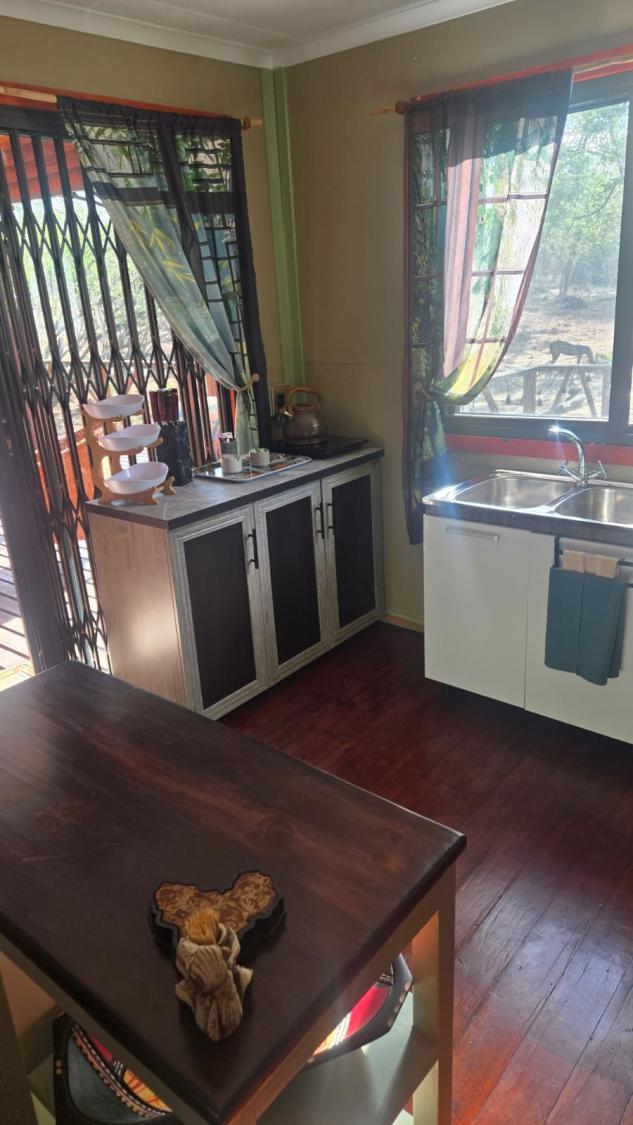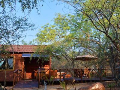 Marnies Bush Hideout is conveniently situated just 25km from Kruger National Park's Crocodile Bridge and 10km from Crocodile River. After a day of sightseeing, guests can unwind with refreshments on the beautiful deck, where wildlife such as Kudus, Impalas, Zebras, and Bush Buck frequently visit the property. Bales of hay and pellets are provided to feed these animals, and guests may also be fortunate enough to witness wildebeest and giraffe grazing among the trees.