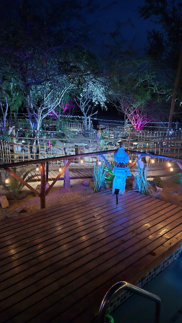 Guests can enjoy a jacuzzi overlooking the bushveld, perfect for cooling off during hot summer days. The jacuzzi can be heated using a donkey geyser upon request. Evenings at Marnies Bush Hideout are special, with opportunities to sit around a campfire or have a traditional braai while listening to the calls of bush babies and our thick tailed bush baby that visits often and watching them enjoy fruit nearby.