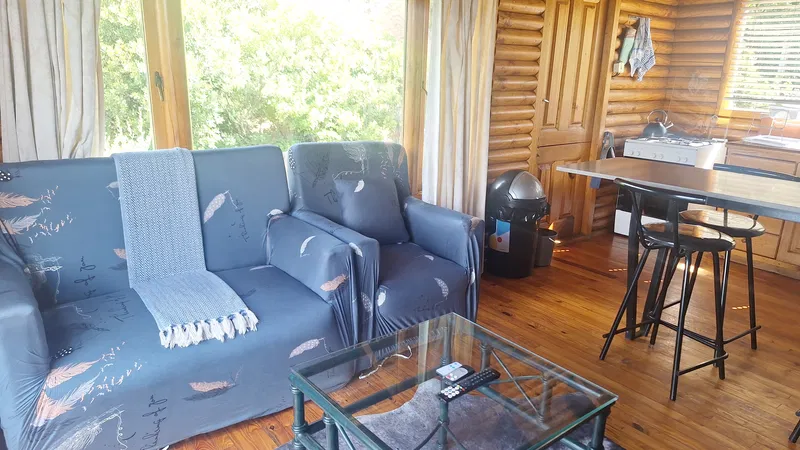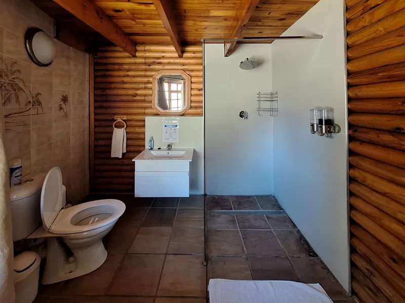 Enjoy the braai area and deck that spans two sides of the cabin. Accessing the cabin involves driving up a steep hill of about 100 meters, with parking just 10 meters away from the cabin itself.